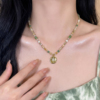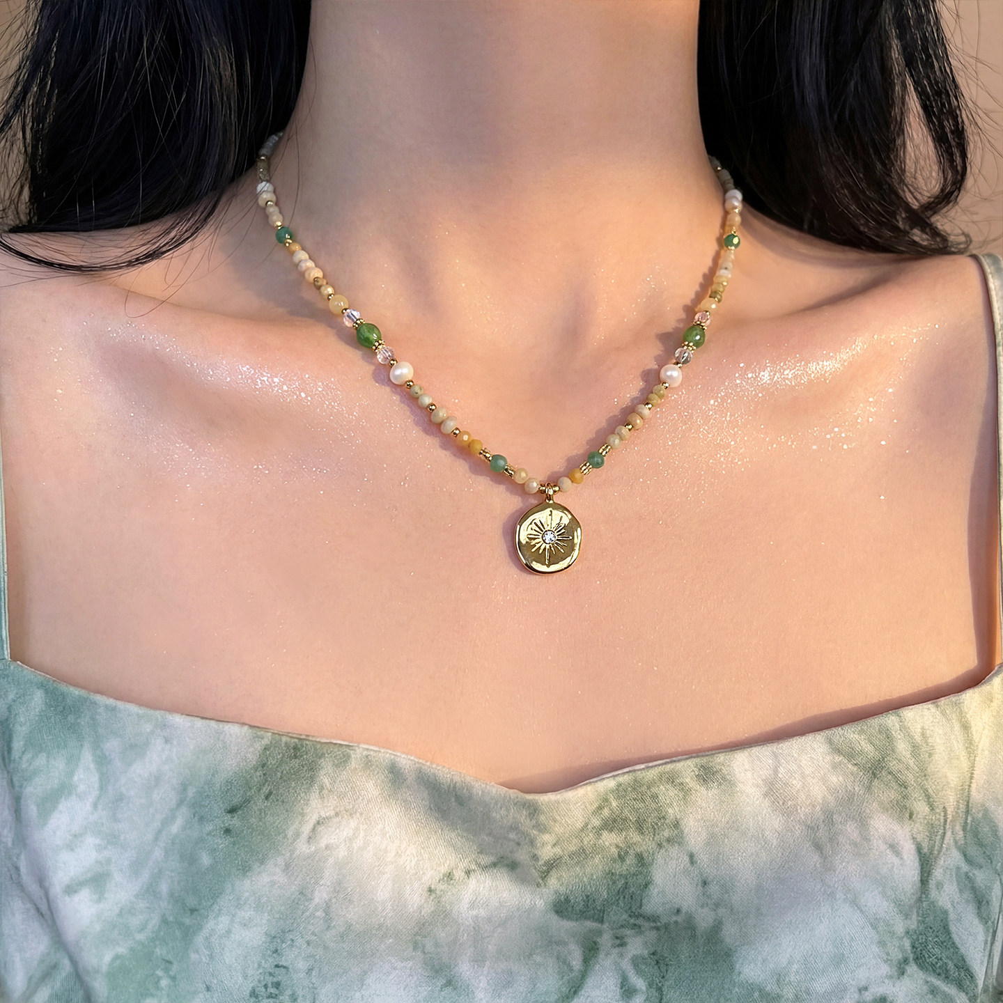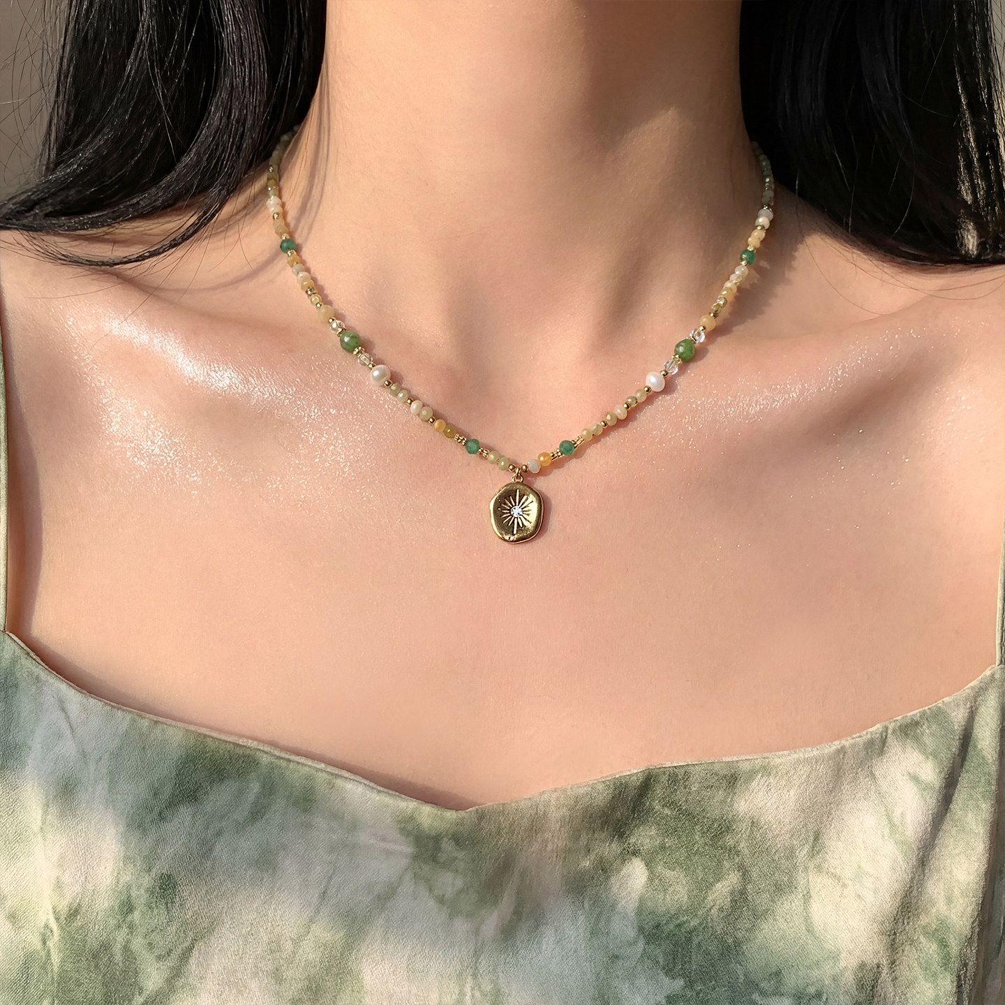 新中式绿色串珠太阳花吊坠项链女复古气质高级感轻奢小众锁骨链