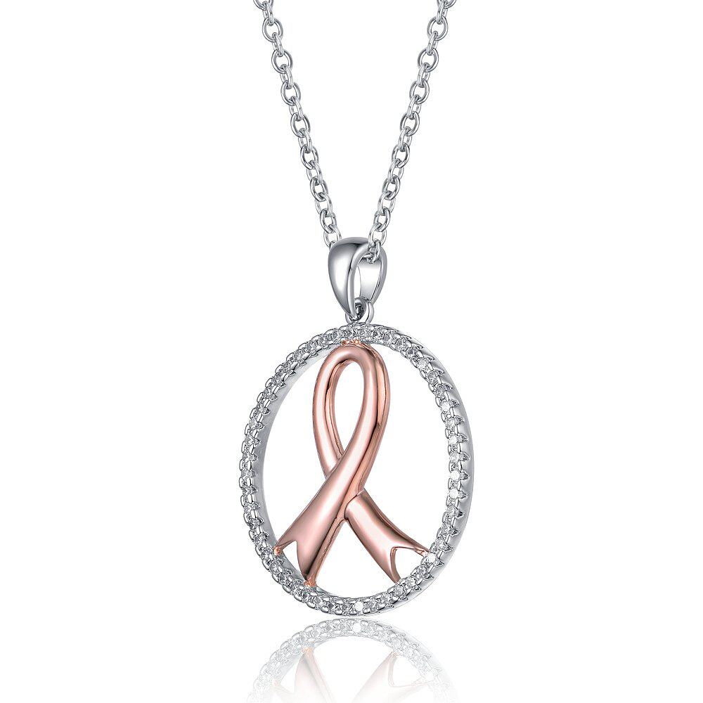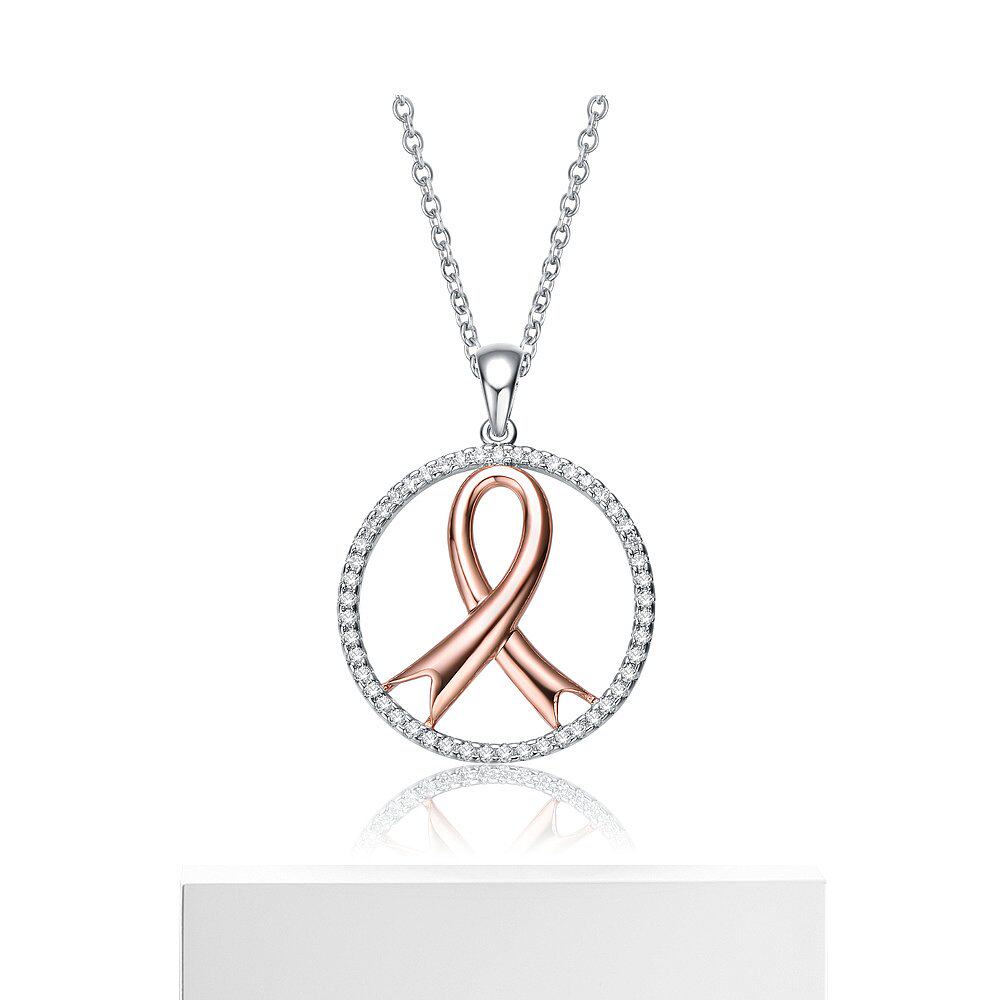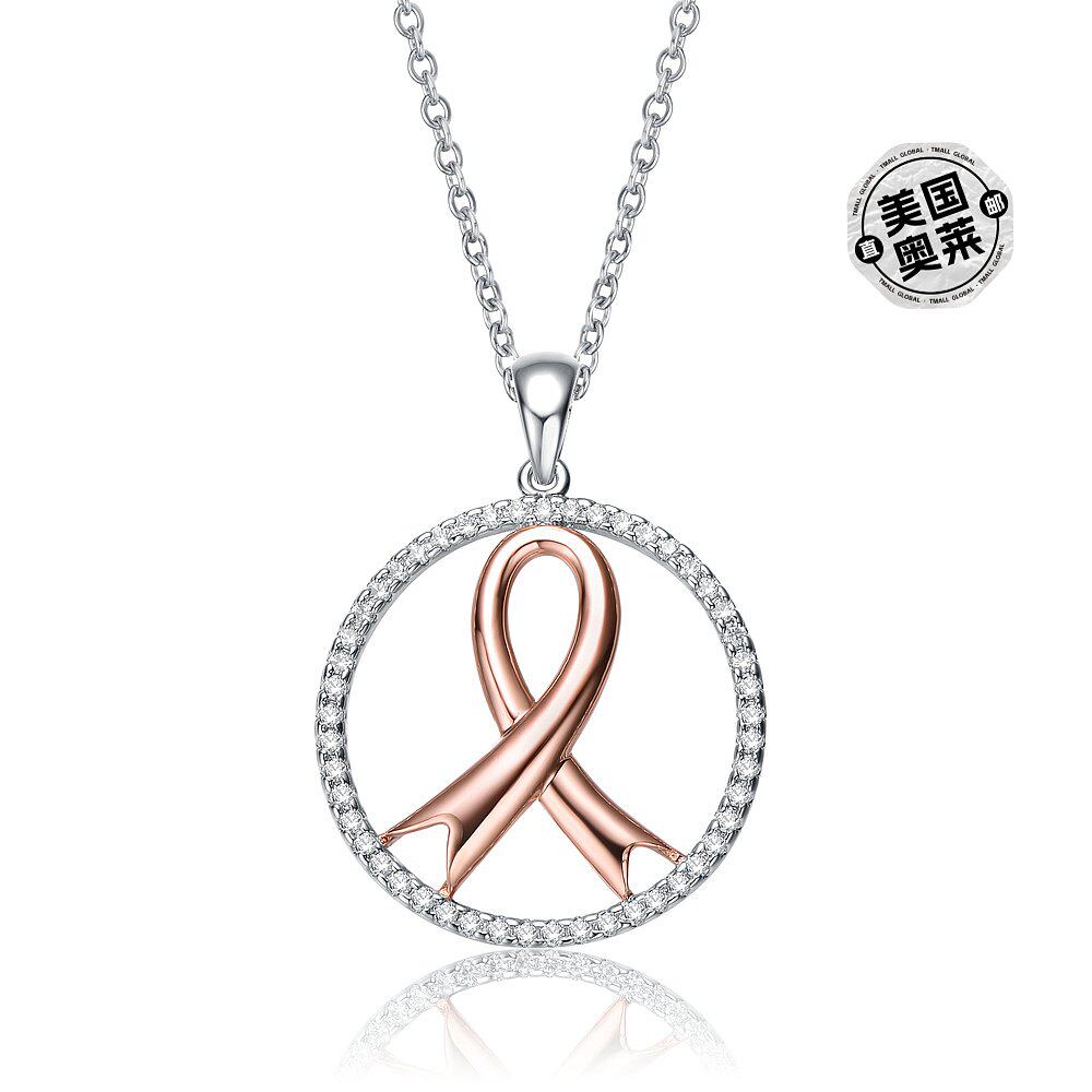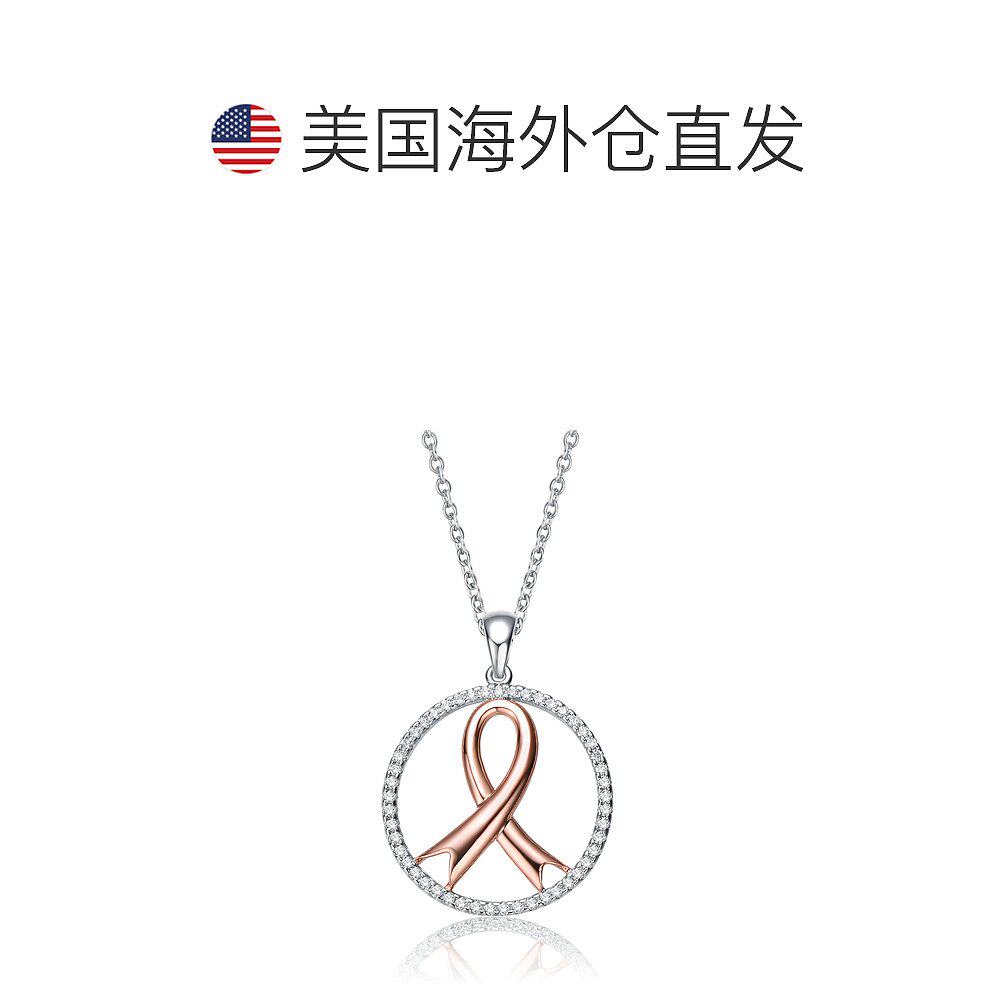 自营 GENEVIVE 纯银两色透明立方氧化锆环项链 - 粉红色 美国奥莱