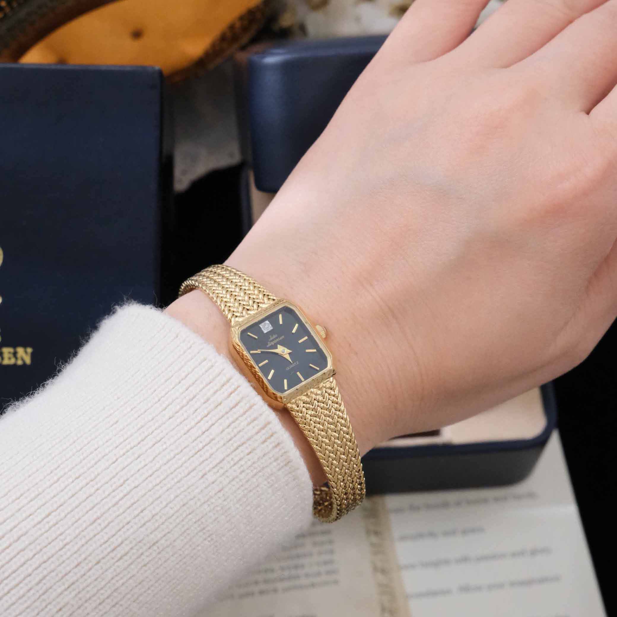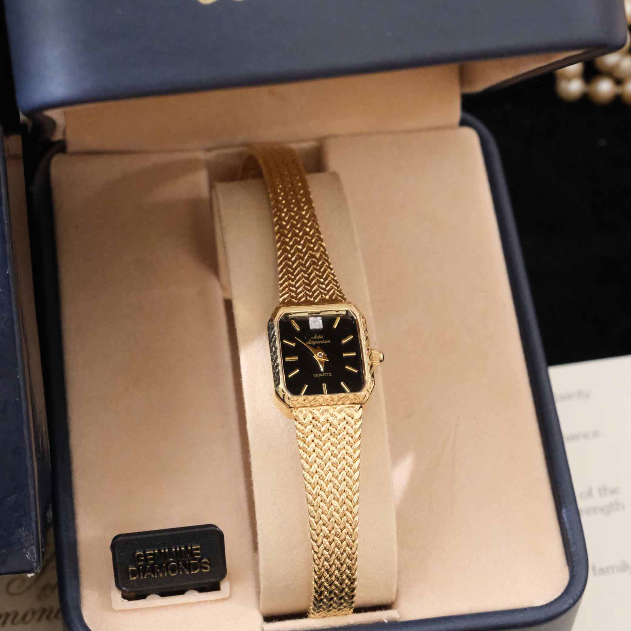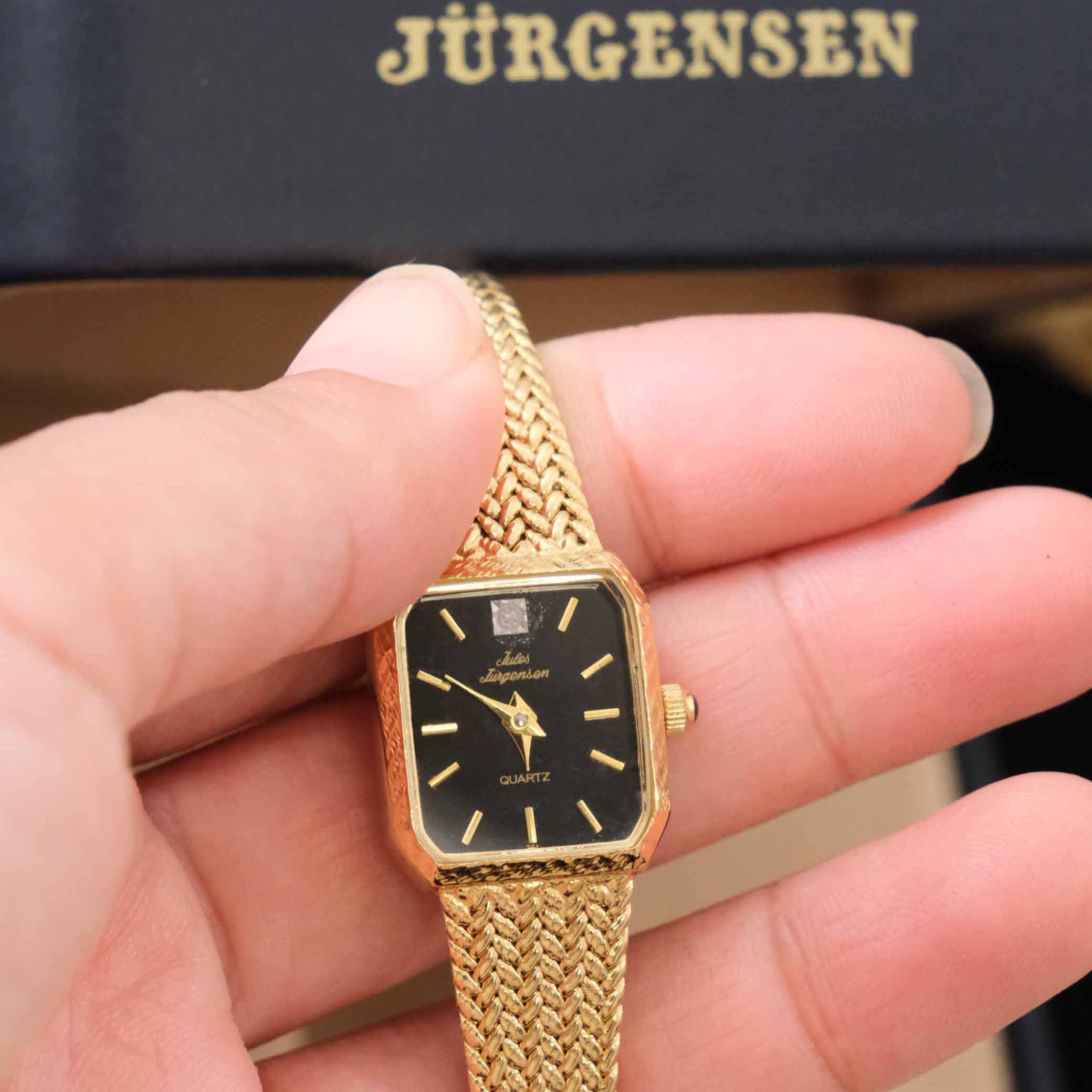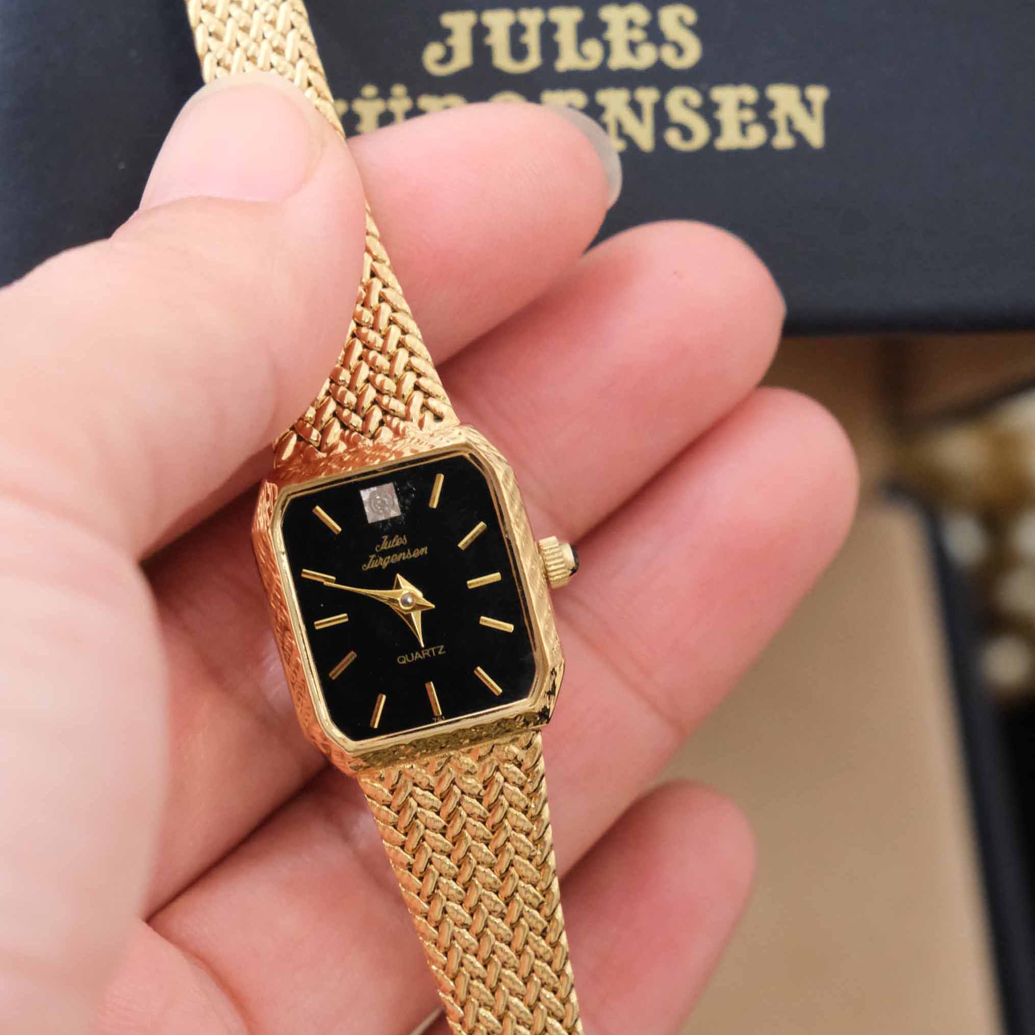 Vintage中古JulesJurgensen佳士杰根生黑色水晶钻麦穗带古董手表
