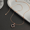 纯银镶钻黑色红色四叶草项链女玫瑰金18k锁骨链彩银2025新款冬季