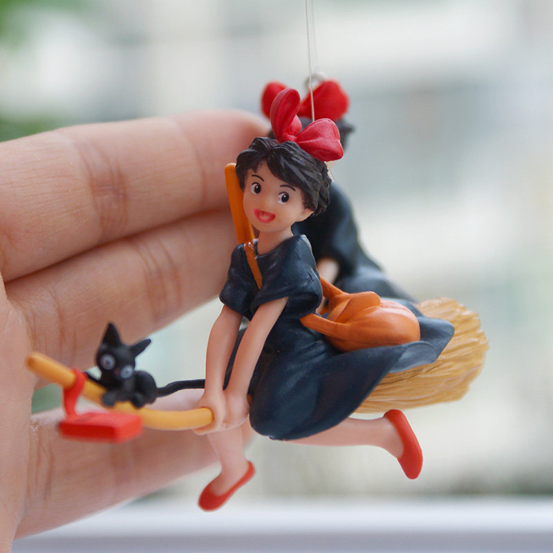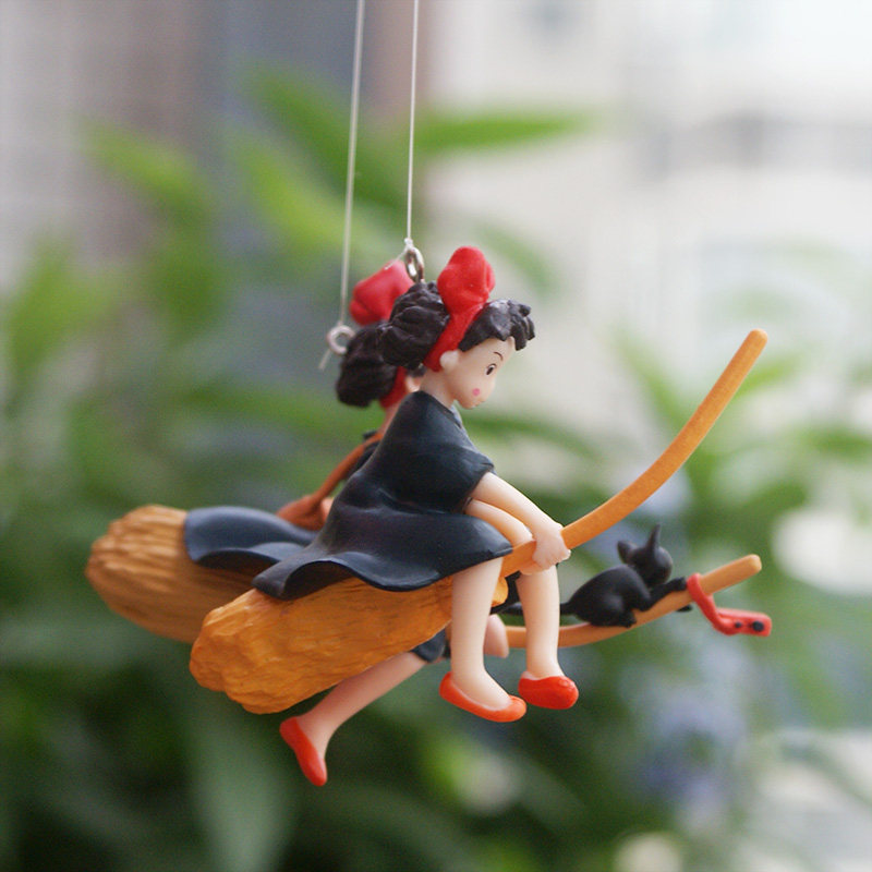 鱼缸悬浮小装饰飞行女孩pvc魔女坐扫把飞翔小摆件配漂浮球造景