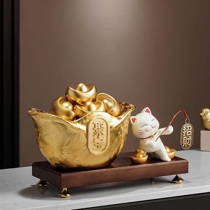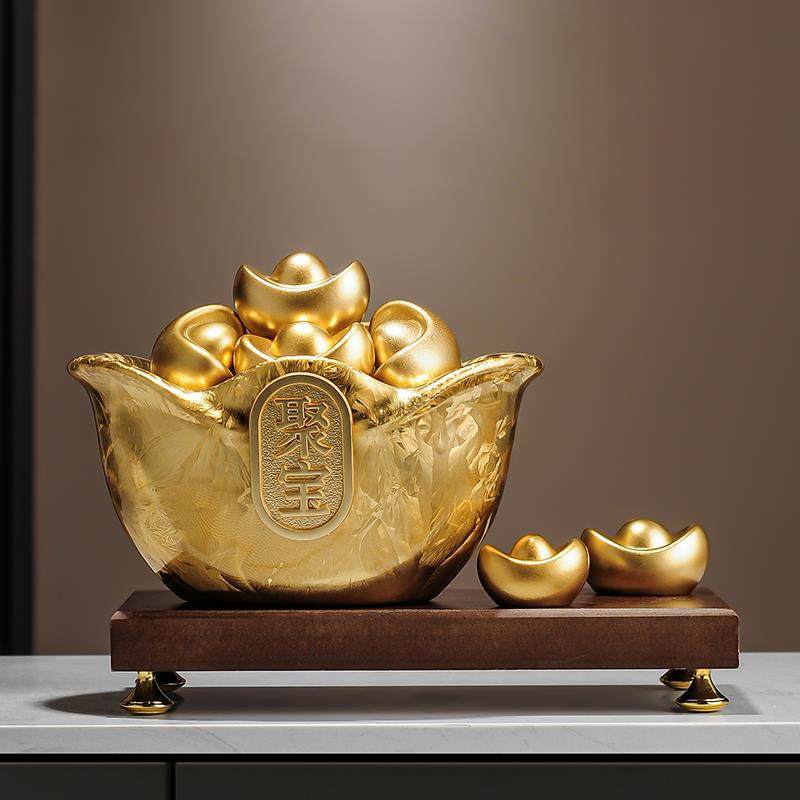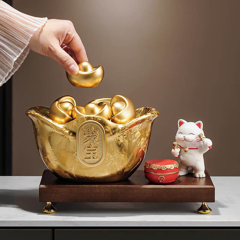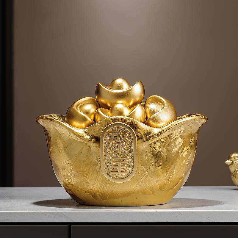 陶瓷聚宝盆招财摆件高级感玄关客厅酒柜办公室装饰乔迁开业礼物