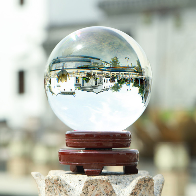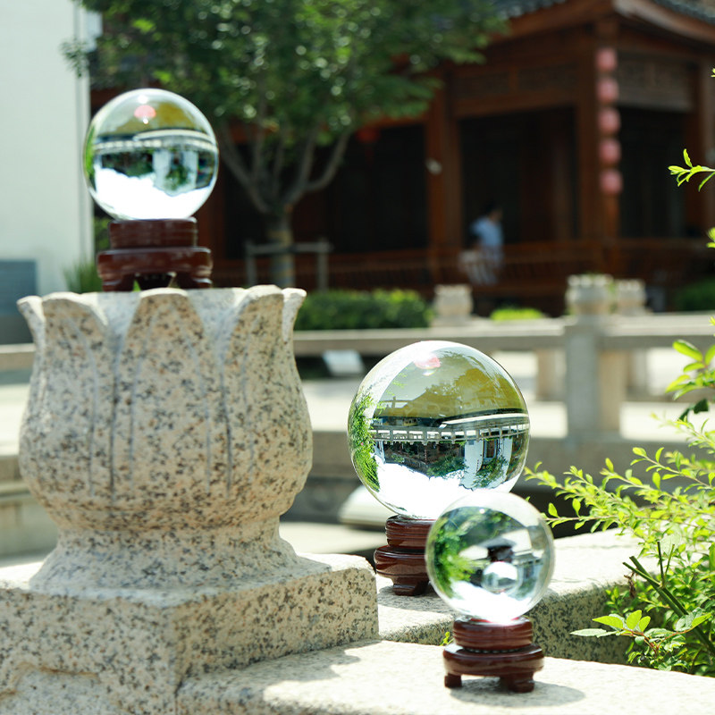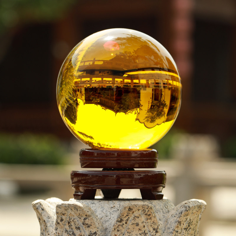 白色水晶球摆件可旋转透明玻璃球招财黄色水晶球家居装饰客厅开业