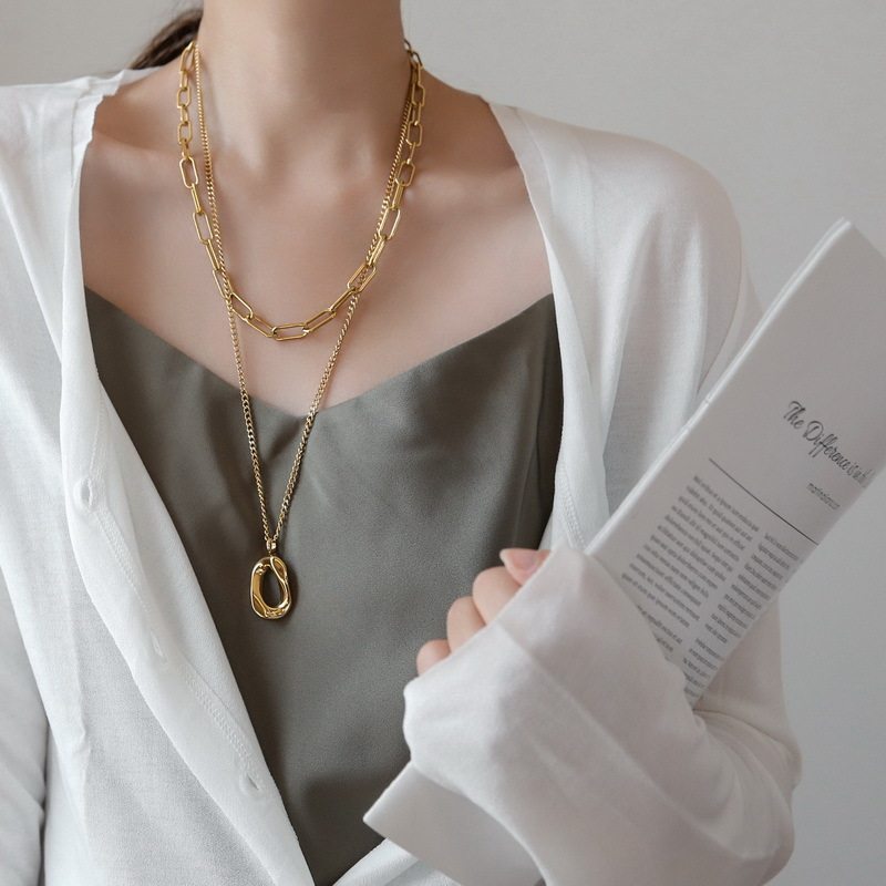 不掉色小众轻奢设计感双层链条毛衣链女长款项链女夏吊坠装饰饰品