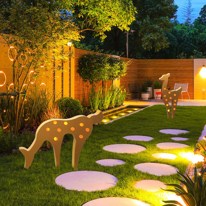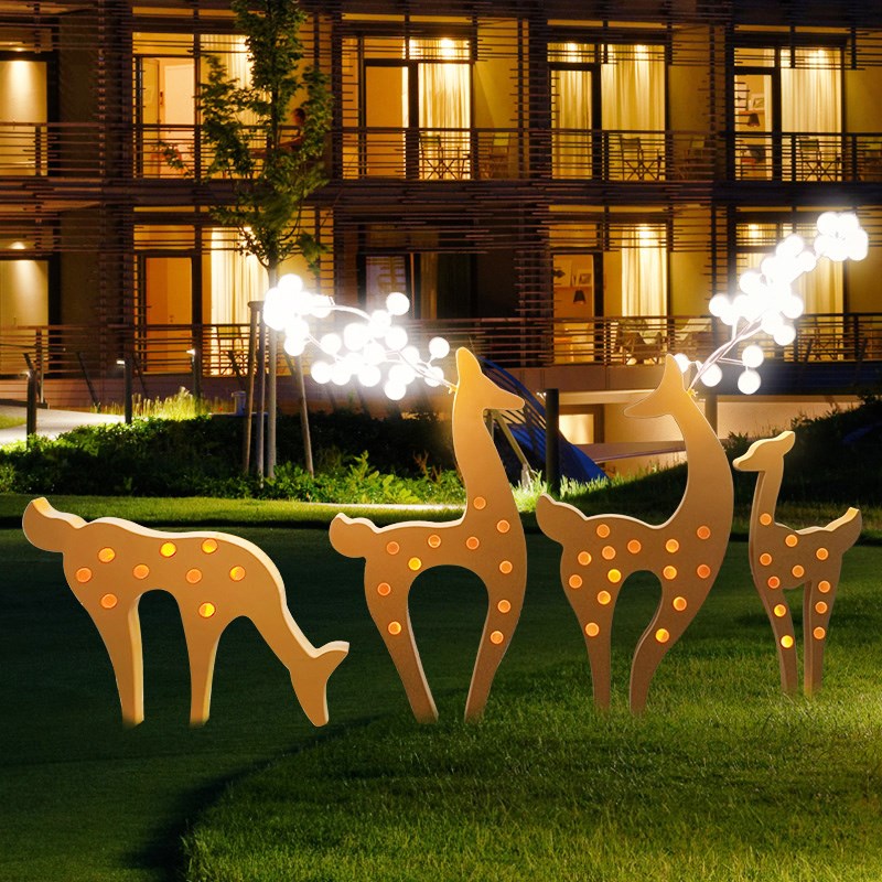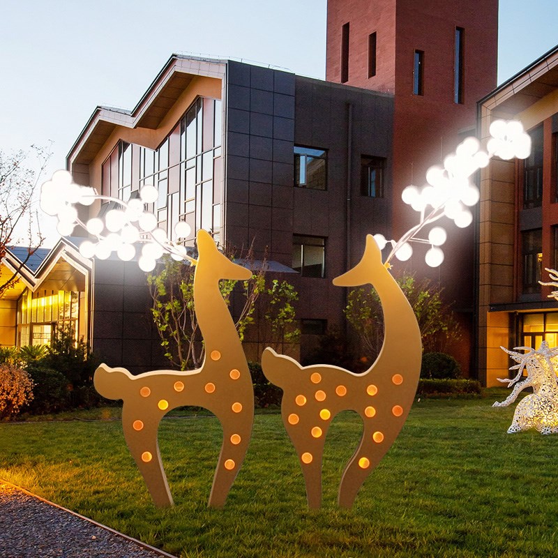 抽象不锈钢剪影梅花鹿雕塑幼儿园户外草坪装饰玻璃钢发光鹿大摆件