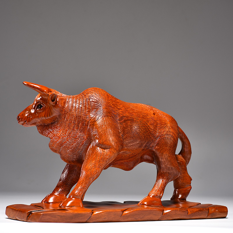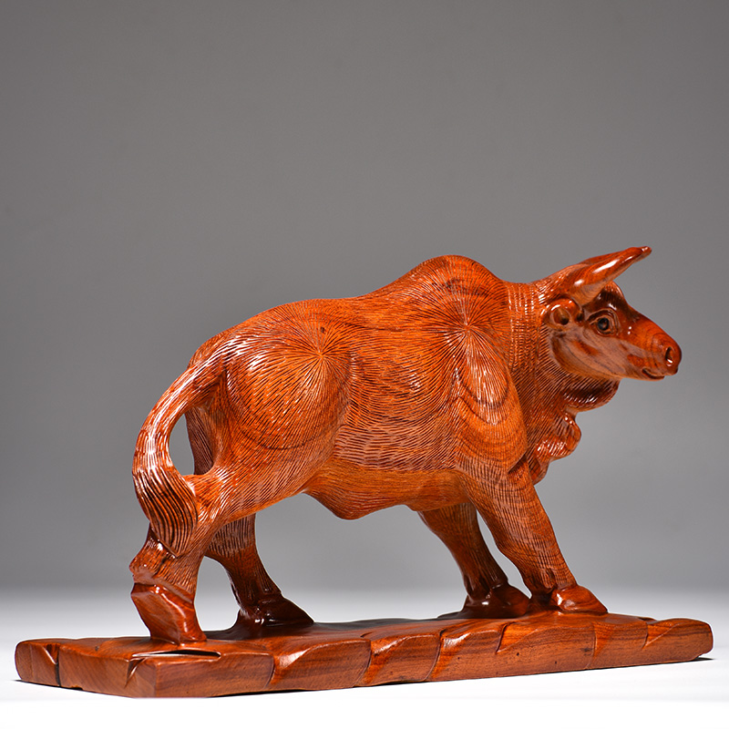 花梨木雕牛摆件实木工艺品家居客厅玄关店铺办公室装饰开业送礼品
