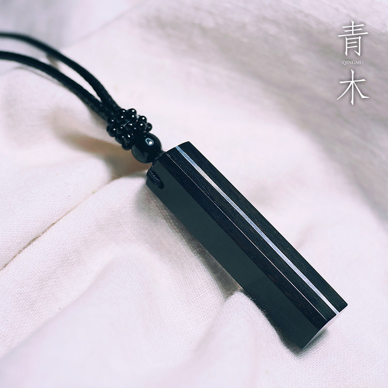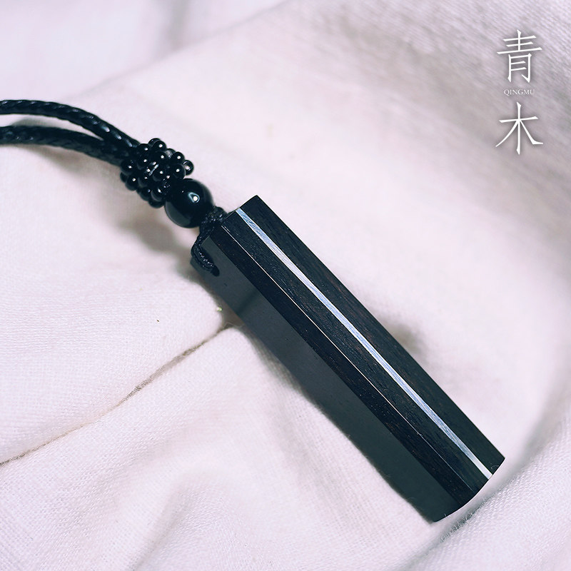 【青木制】手作紫光檀嵌银吊坠树脂滴胶檀木定制首饰情侣礼物品