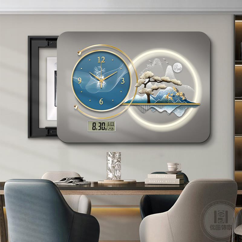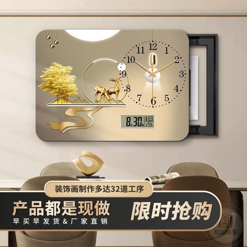 轻奢麋鹿电表箱装饰画带钟表万年历遮挡配电箱电闸盒盖板餐厅
