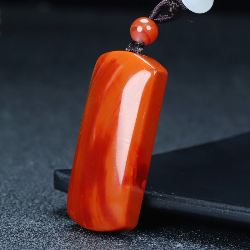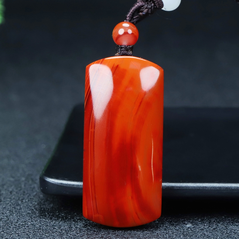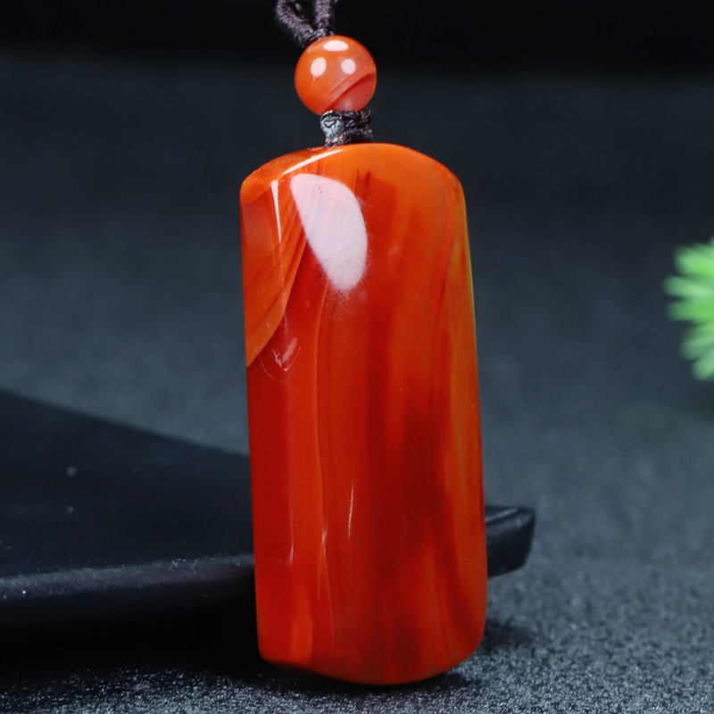 天然凉山南红玛瑙平安牌挂件无事牌原石柿子红火焰纹吊坠男女110