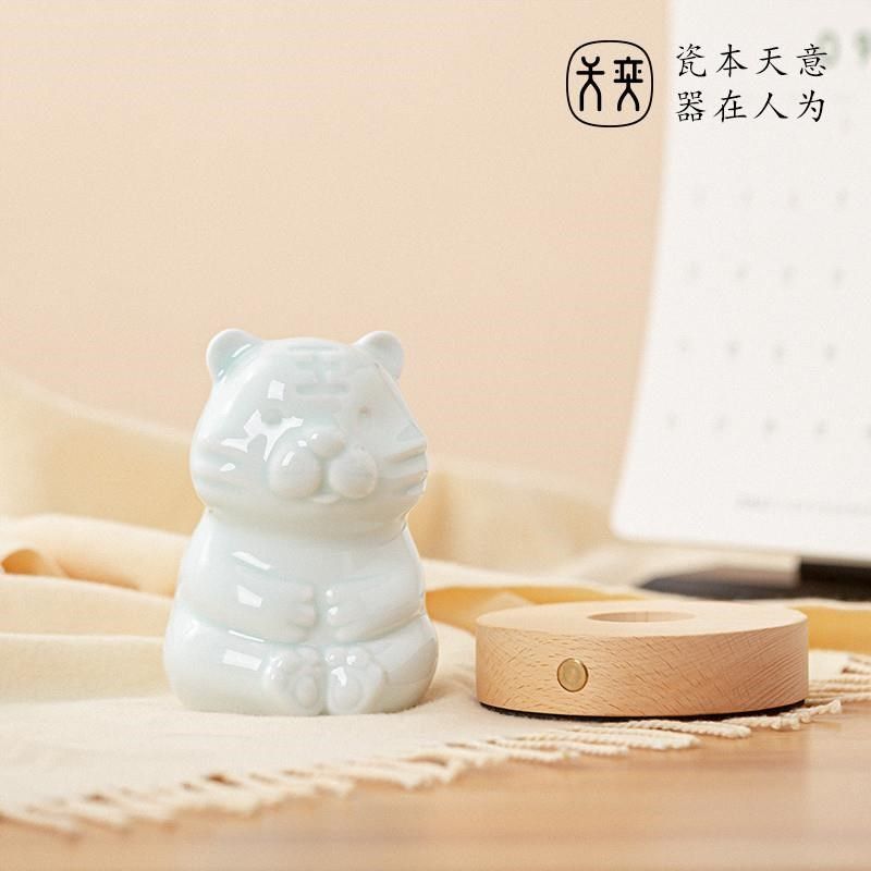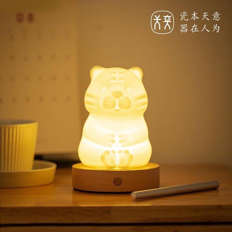 小夜灯陶瓷生f肖虎床头卧室书桌装饰品宿舍电脑桌面创意治愈系摆
