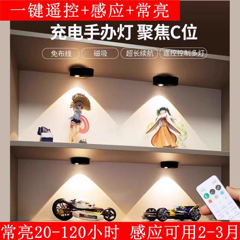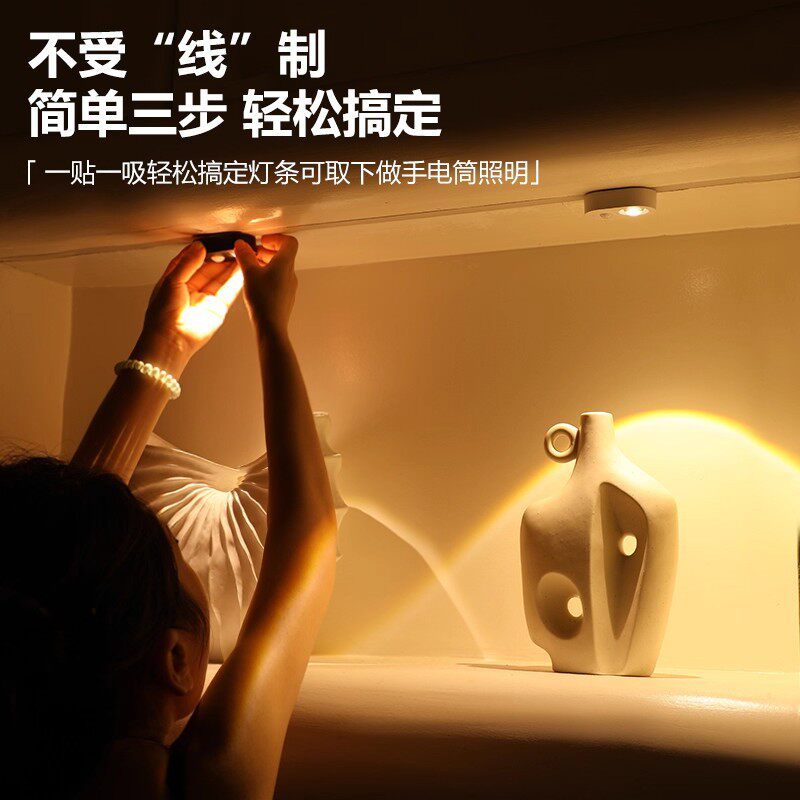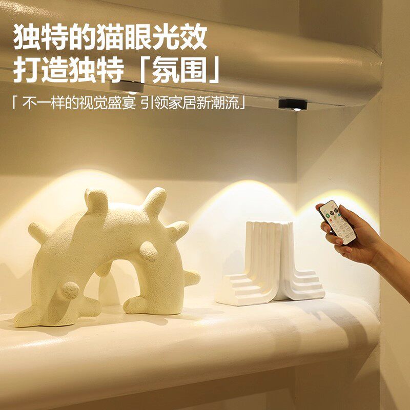 遥控感应灯猫眼山丘射灯橱柜酒柜灯无线可充电氛围灯过道灯免布线
