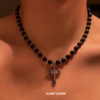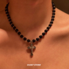 十字架黑色串珠男生项链女小众设计感冷淡风情侣款欧美嘻哈锁骨链
