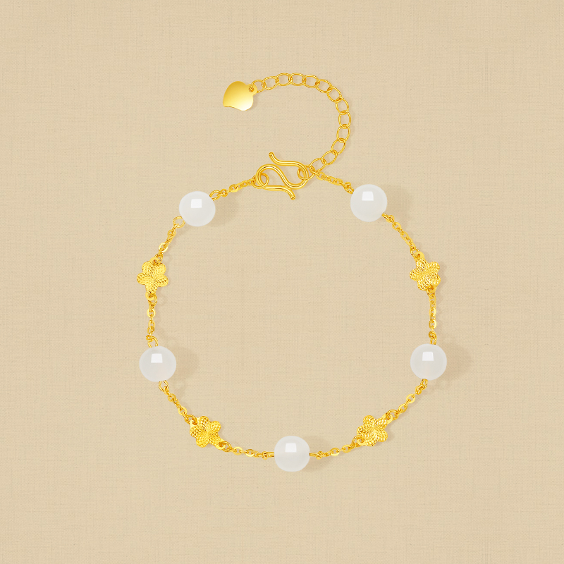 周六福和田玉金镶玉白玉古典露珠晨花手链饰品母亲节新品节日礼物