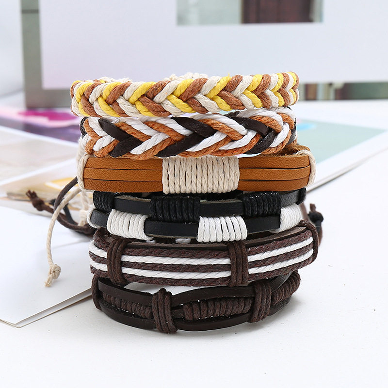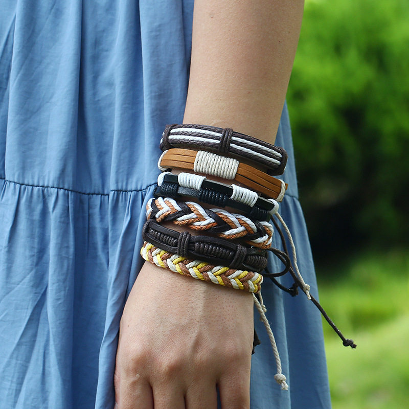 ins 简约风手工麻绳编织手链六件套小众设计男士文艺复古时尚手绳