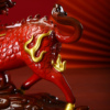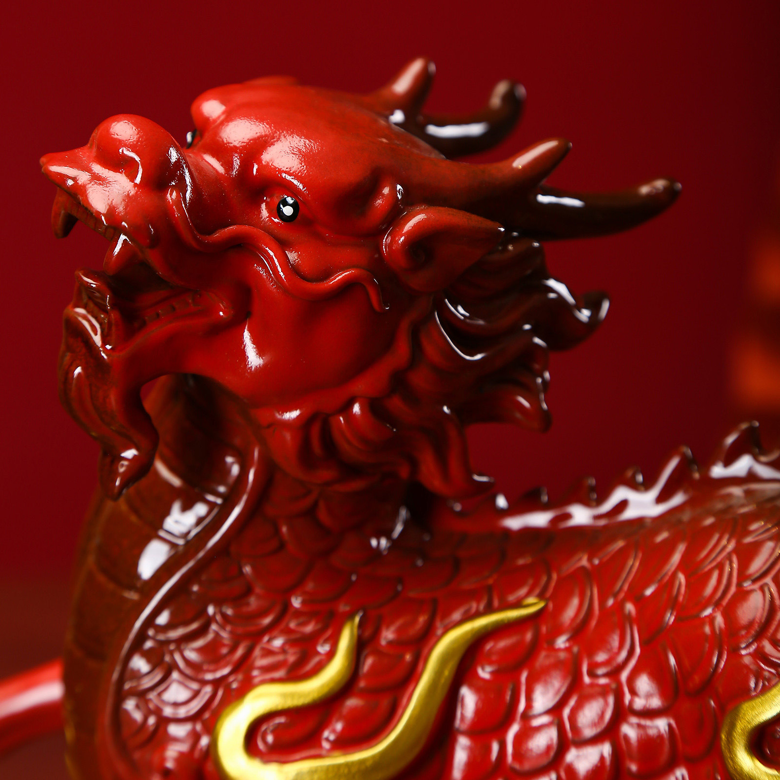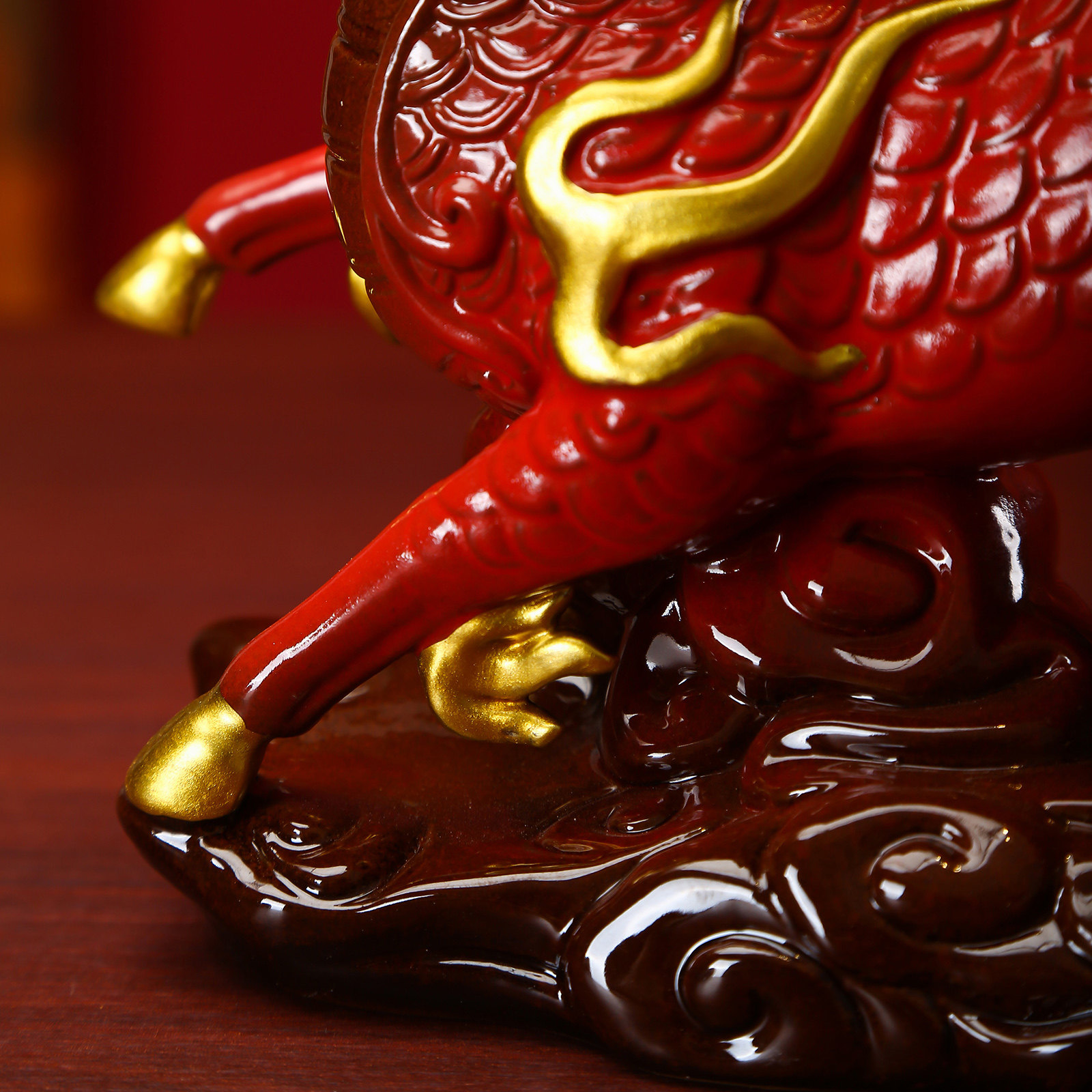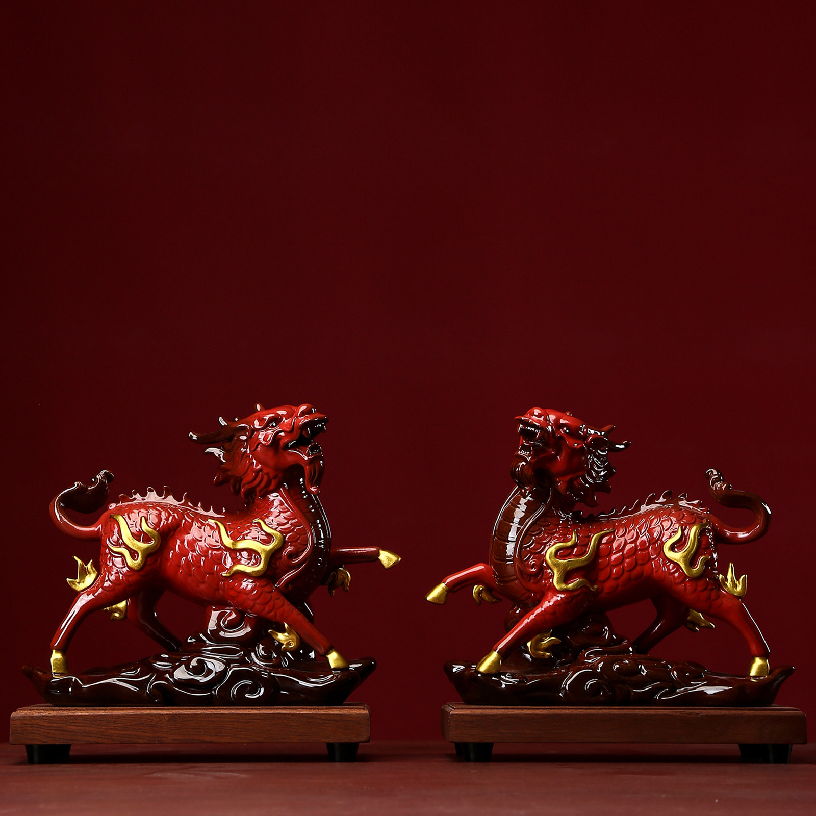 黼山堂红色火麒麟一对陶瓷风水摆件招财镇宅客厅玄关办公室装饰品