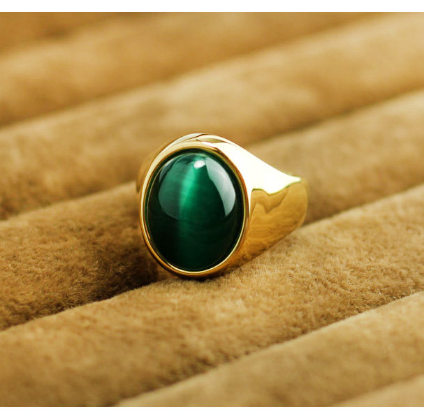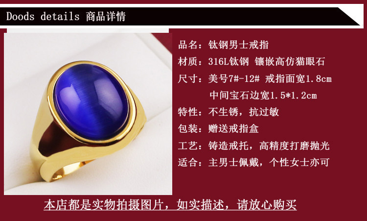 复古钛钢镀金色戒指复古男士蓝色宝石指环男女包邮刻字韩饰品