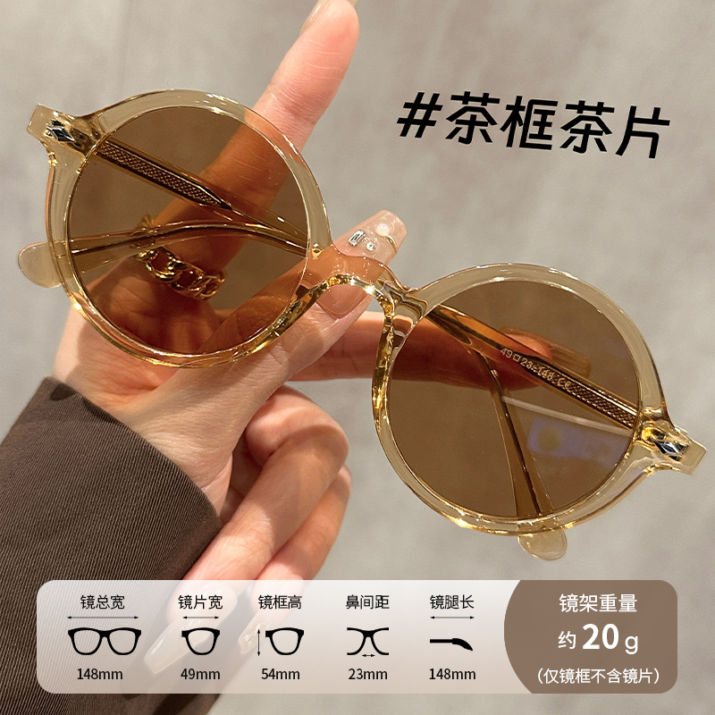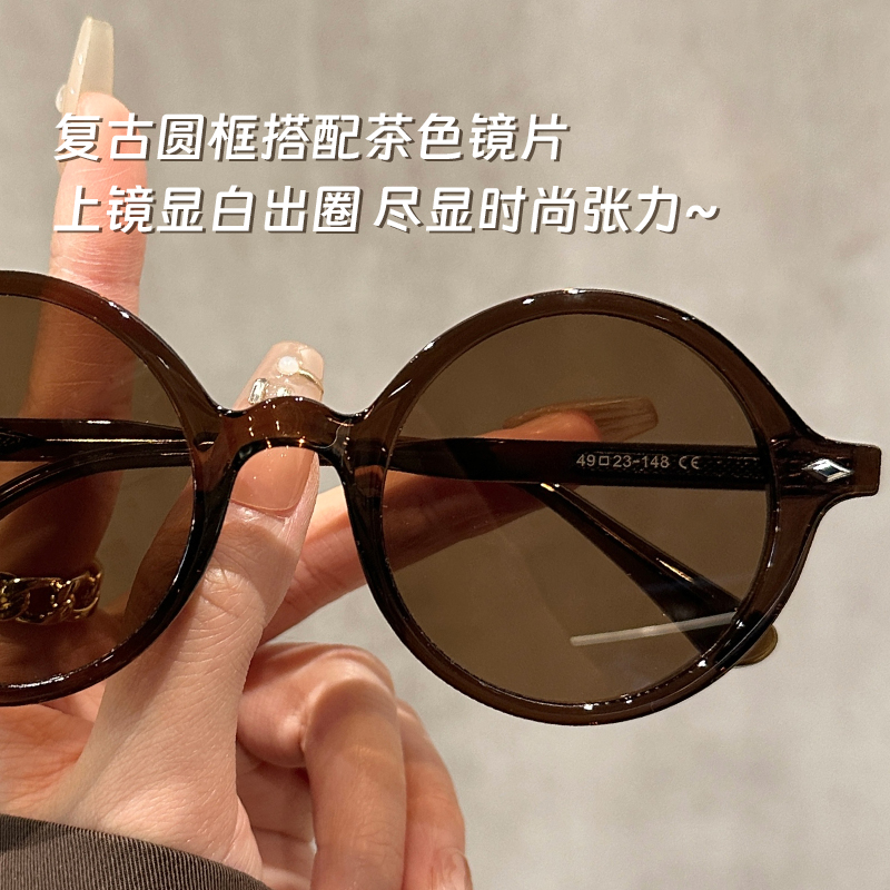 复古圆形咖框茶色墨镜女款2025新款可配度数遮阳防紫外线太阳眼镜