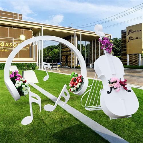 大型仿真音符雕塑户外庭院别墅主题装饰字母大提琴不锈钢铁艺摆件