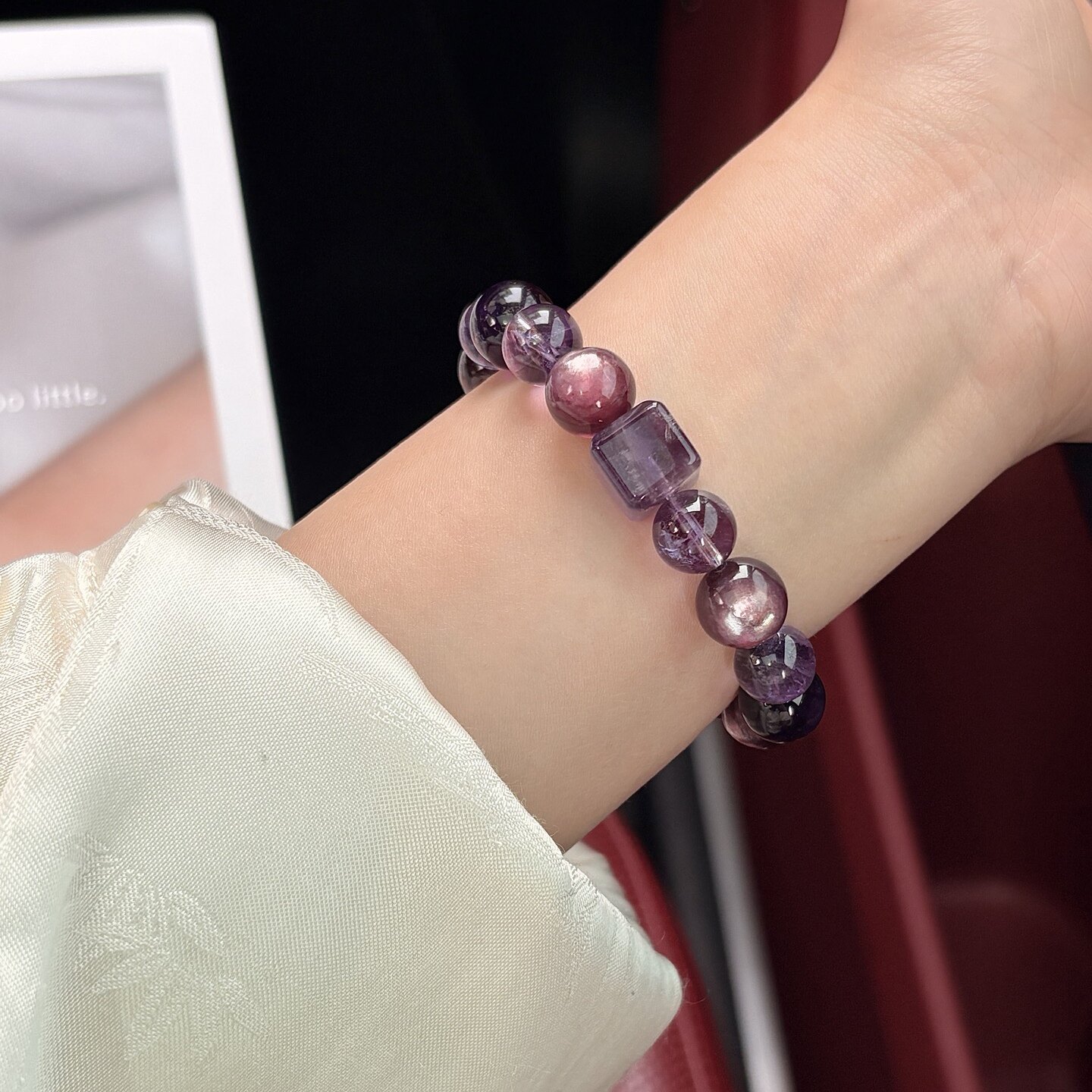 原创天然紫色系方糖水晶手串紫锂云母紫水晶高贵气质显白九紫离火