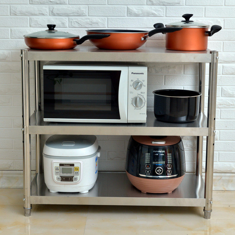 厨房置物架落地多层不锈钢3层微波炉E烤箱放锅架子三层4收纳储物