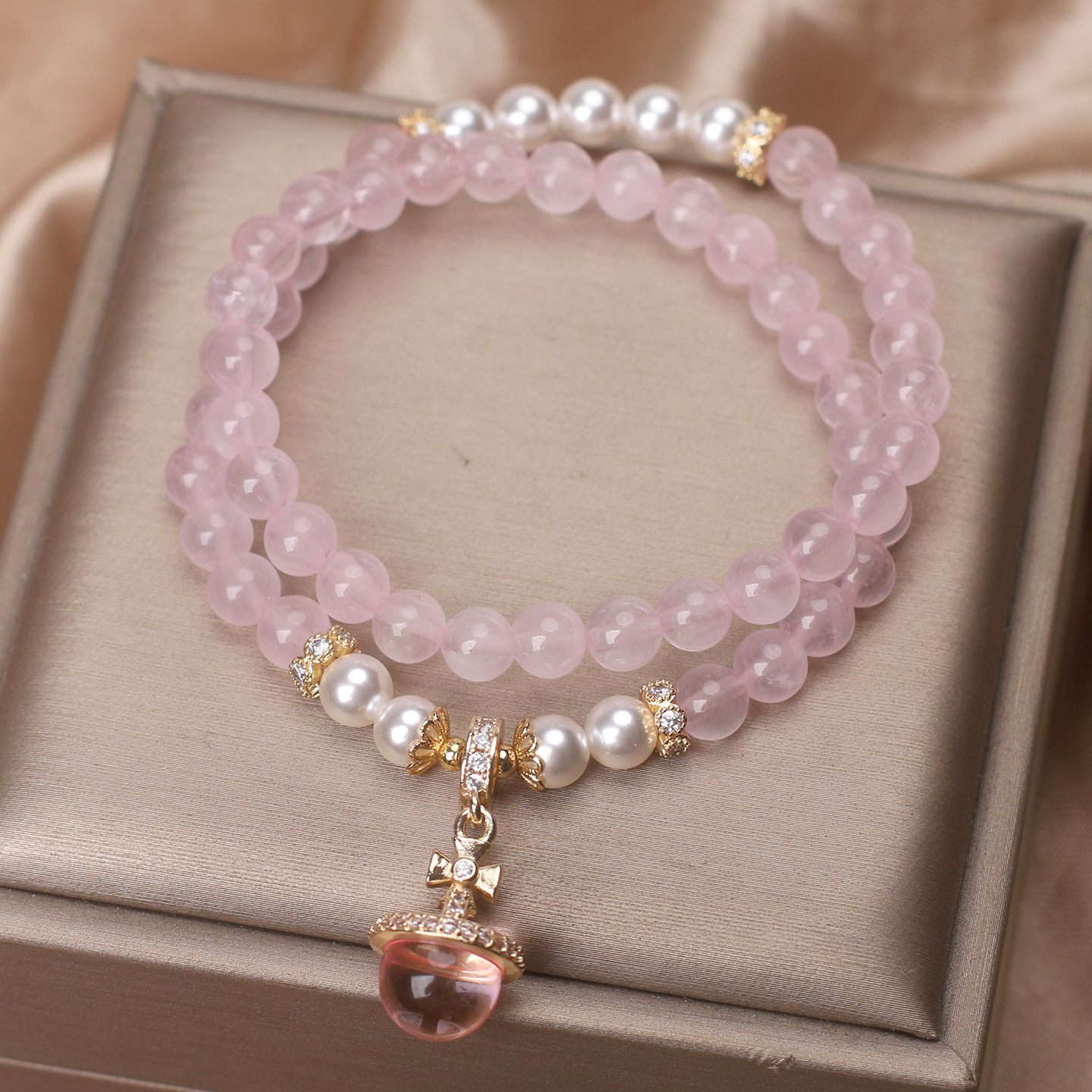 天然粉水晶双圈手链女款轻奢小众精致星球吊坠水晶手串送闺蜜礼物