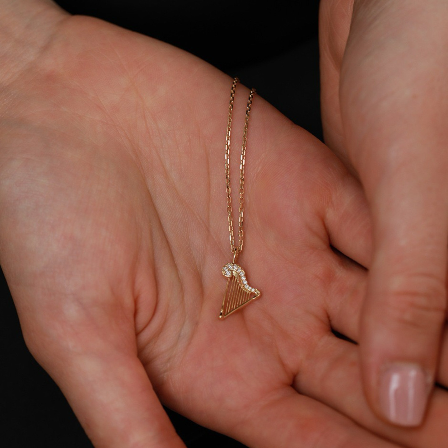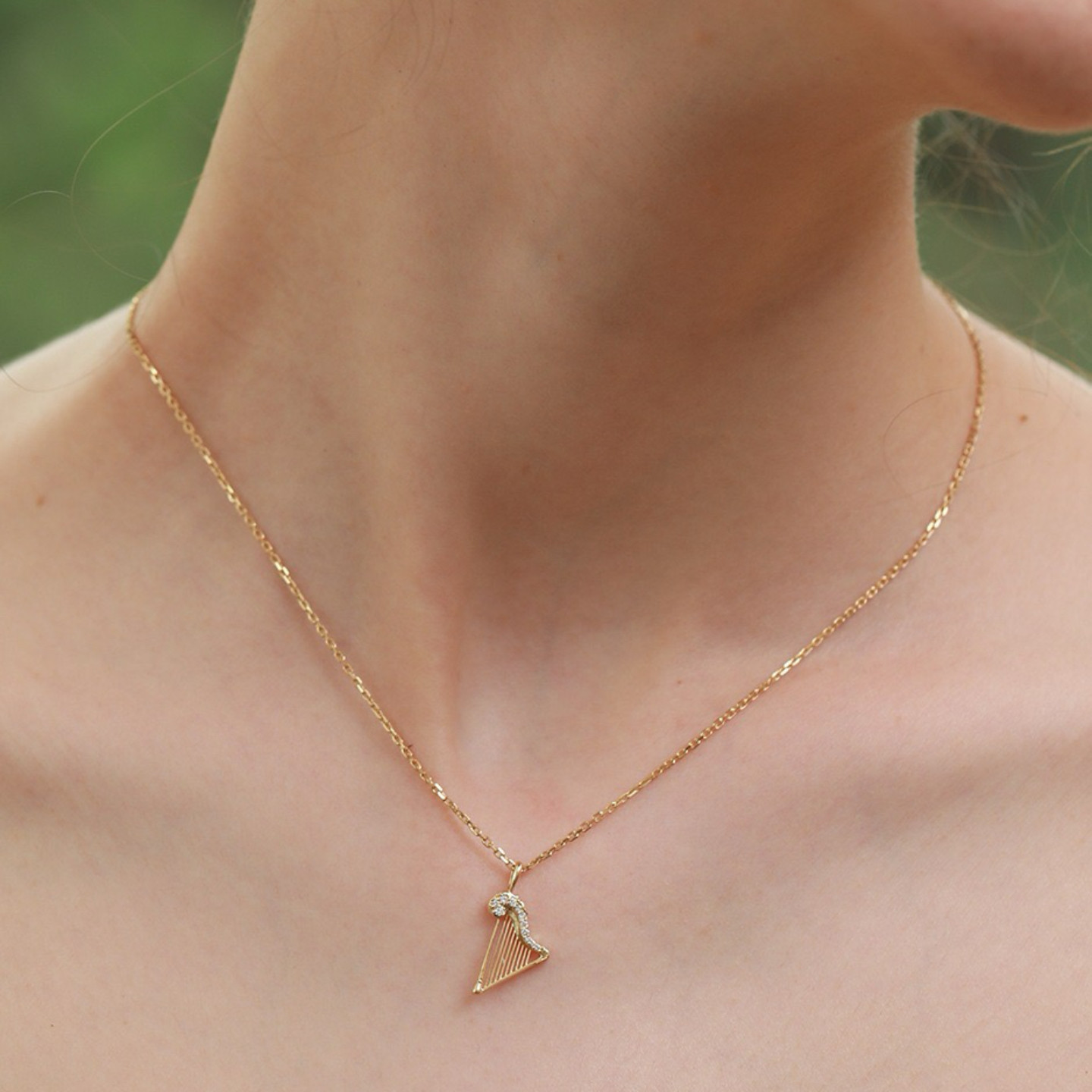 法式竖琴锆石项链纯银古典轻奢复古个性小众设计高级感饰品锁骨链