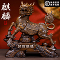 铜麒麟摆件公母一对纯黄铜镇宅麒麟八卦办公室客厅乔迁桌面装饰品