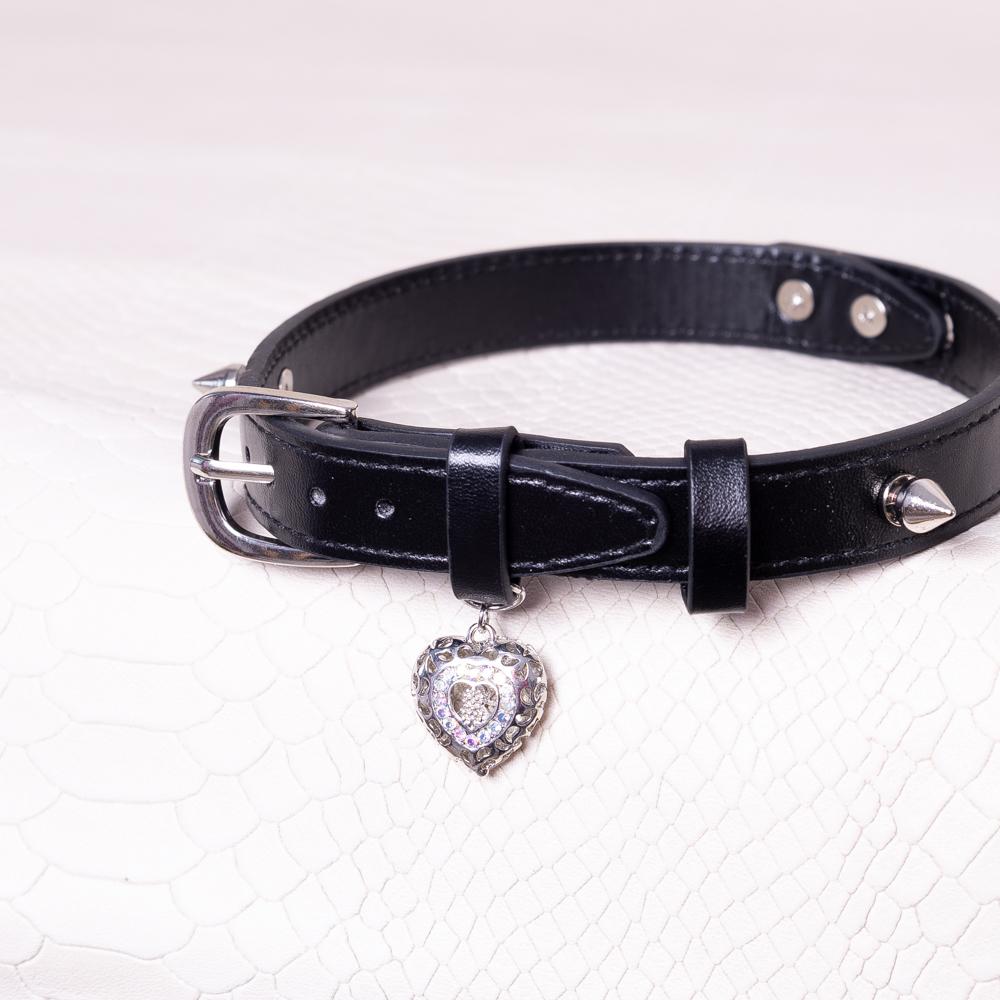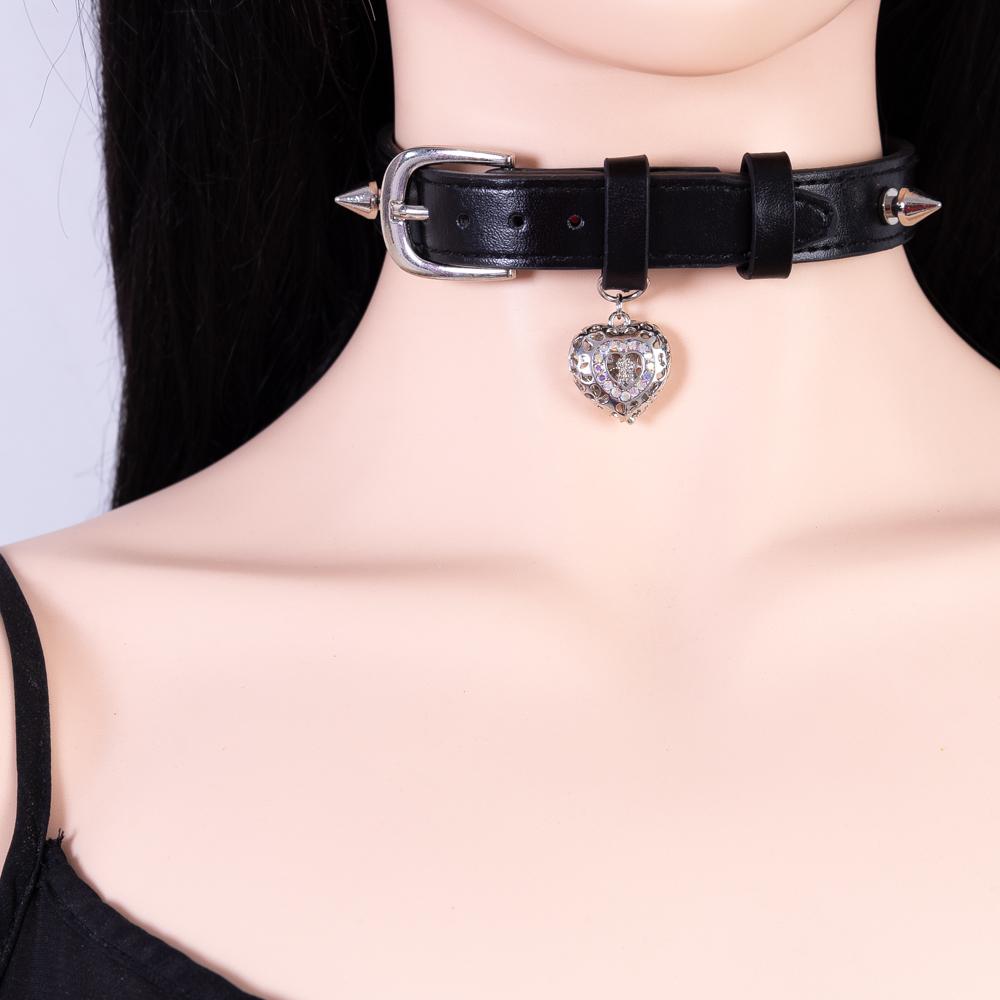 项圈定制刻字女m真皮手工皮具爱心铃铛配饰男m