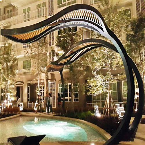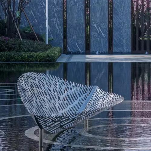 不锈钢叶子摆件镜面水景镂空树叶廊架雕塑酒店售楼处地产装饰美陈