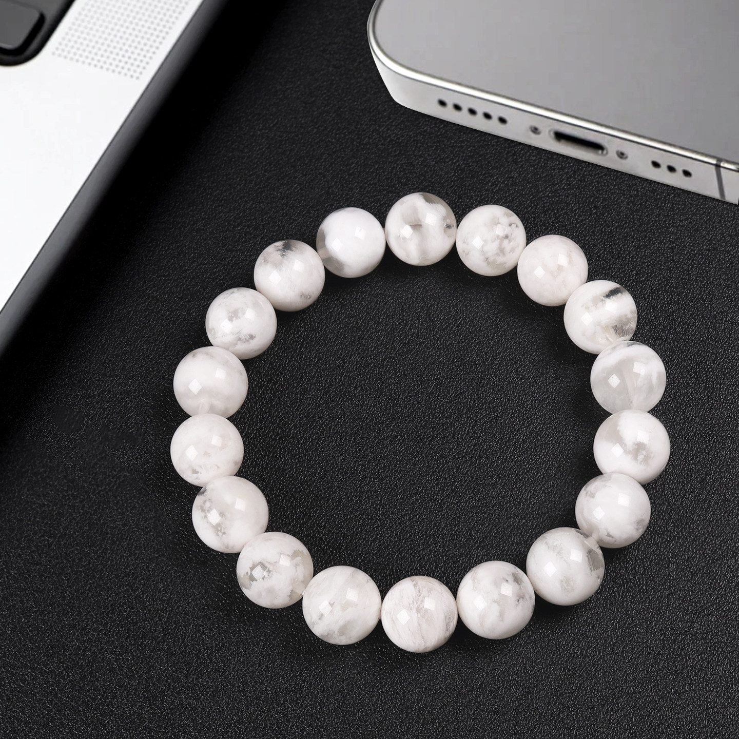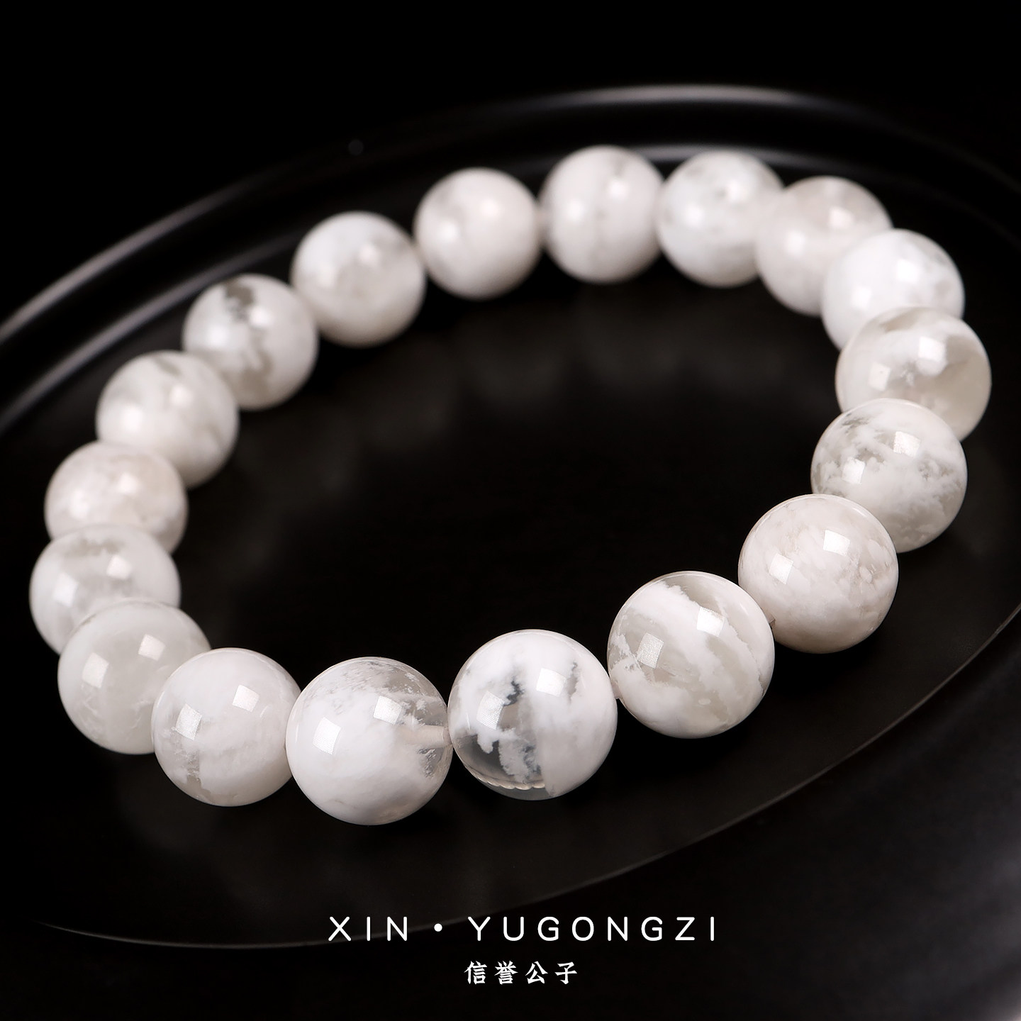 精选天然白雪花幽灵白云母圆珠水晶散珠男女文玩手串送情侣闺蜜