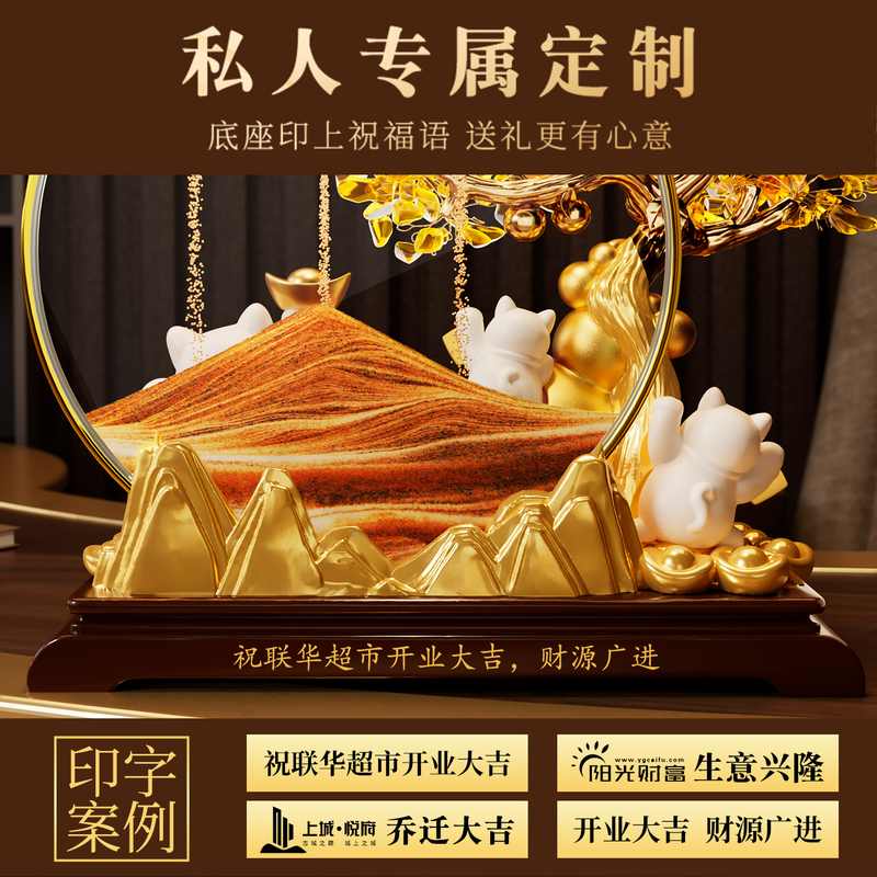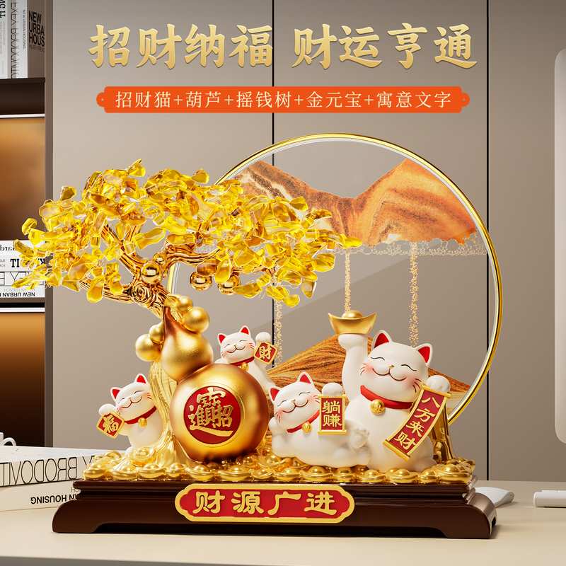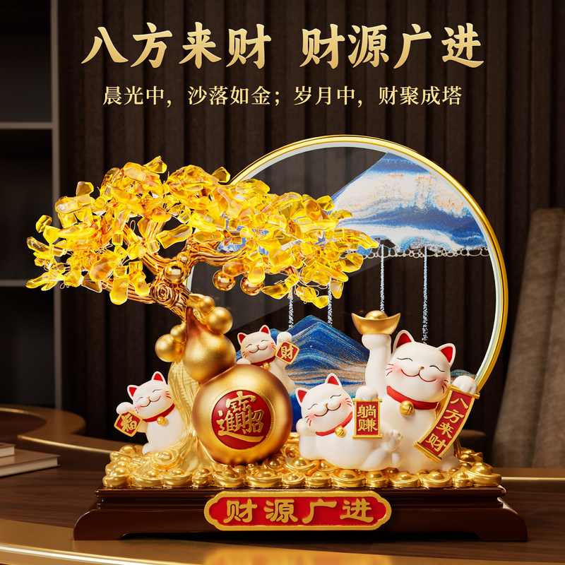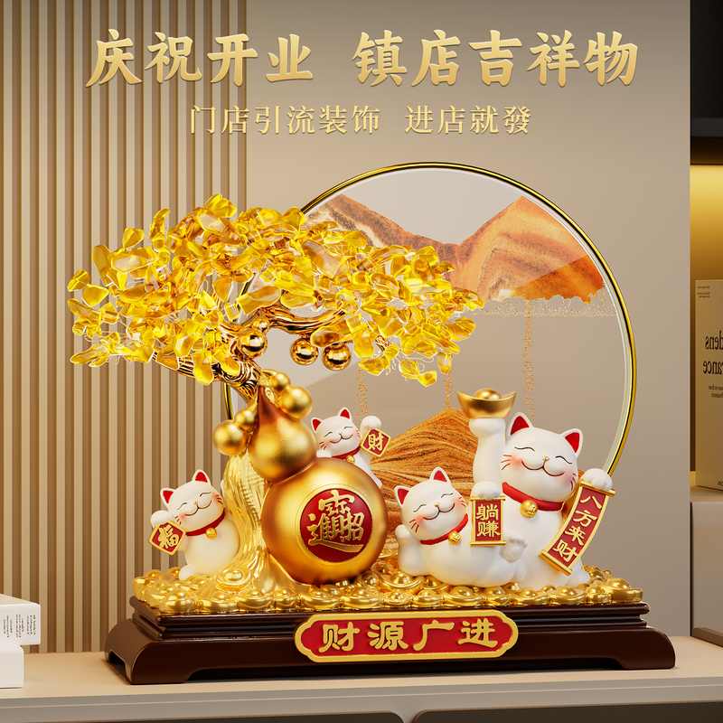 财源广进发财树招财猫流沙画摆件高档装饰品乔迁开业礼物