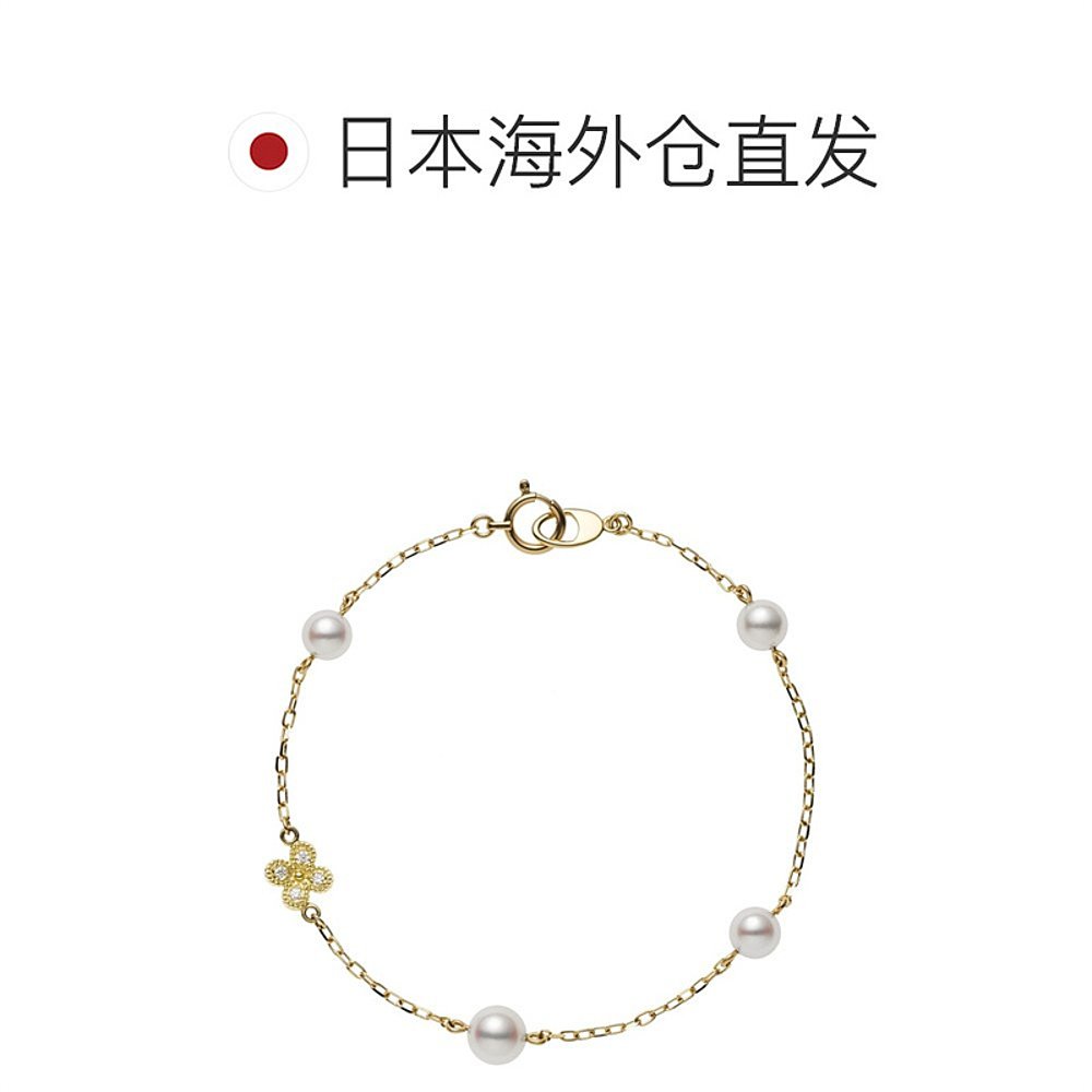 日潮跑腿Mikimoto御木本女士手镯18K黄金珍珠通勤四叶草钻石手链