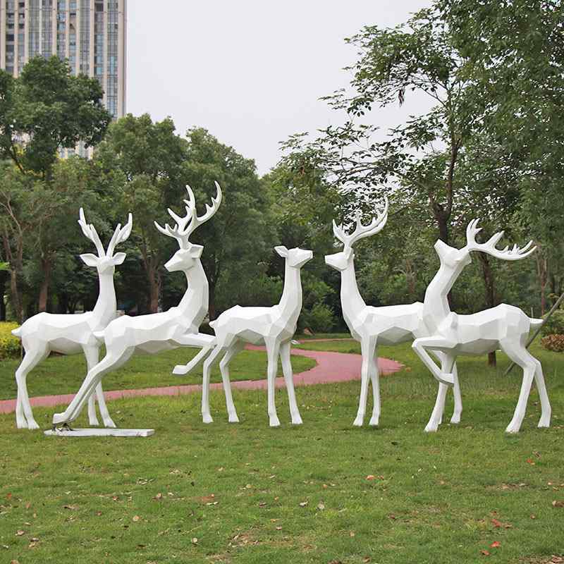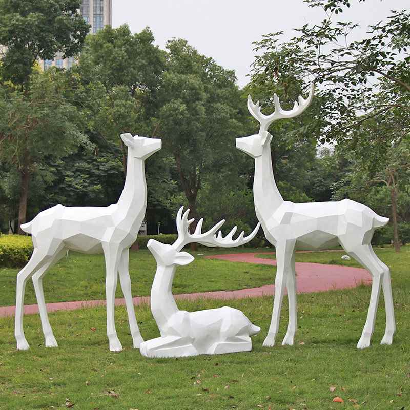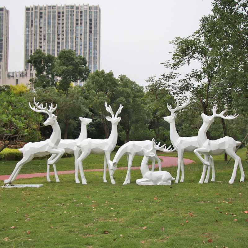 园林景观装饰小品户外小区草坪造景摆件玻璃钢几何梅花鹿动物雕塑