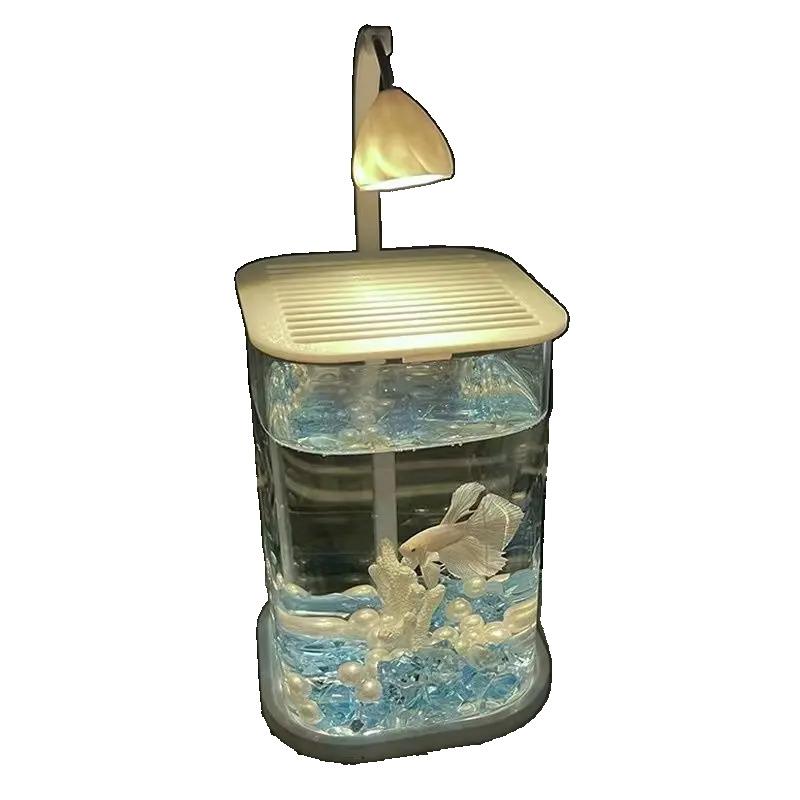 鱼缸斗鱼专用超白小型懒人玻璃缸客厅创意桌面摆件高级感观赏灯