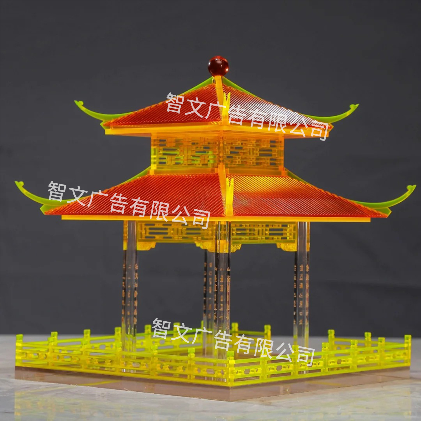 新中式四角亭阁楼模型亚克力古建筑凉亭摆件玄关桌面软装摆设定制