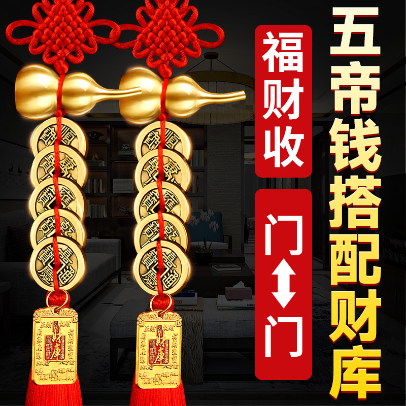 五帝钱挂件门对门黄铜葫芦纯开口朱砂真品开财库入户压门槛全古币