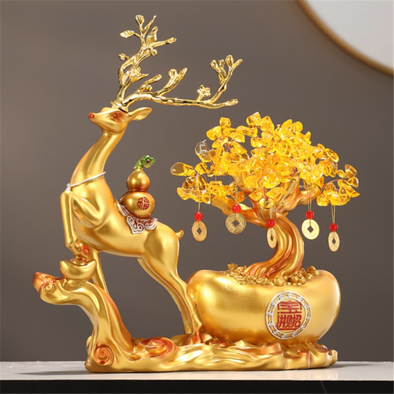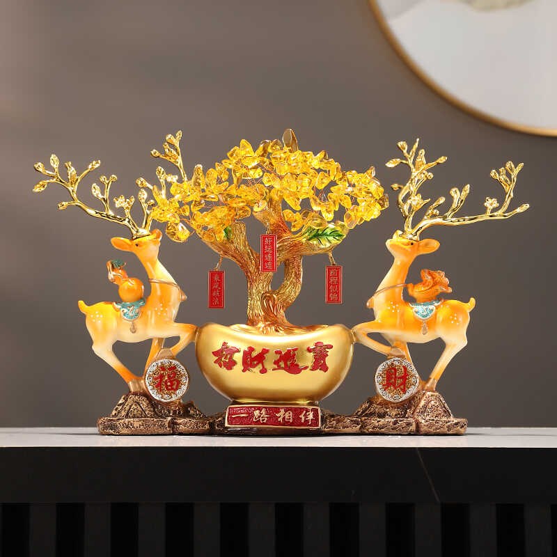 招财开业乔迁礼品元宝鹿发财树柜子玄关高L端办公室装饰品开运摆
