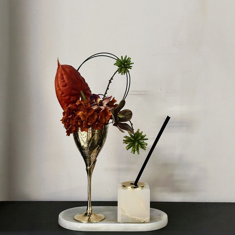 中古风轻奢风样板间售楼处客厅玄关柜装饰画花器花艺软装摆件组合