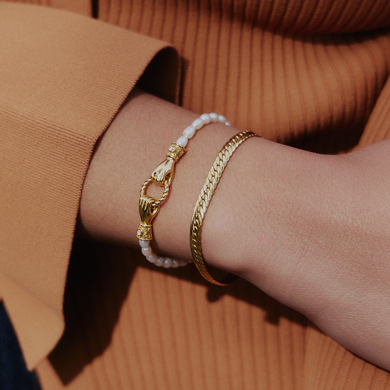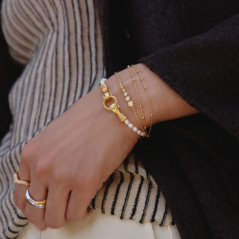 预售 Missoma珍珠手拉手手链小众设计镀18K金米粒珍珠串珠礼物