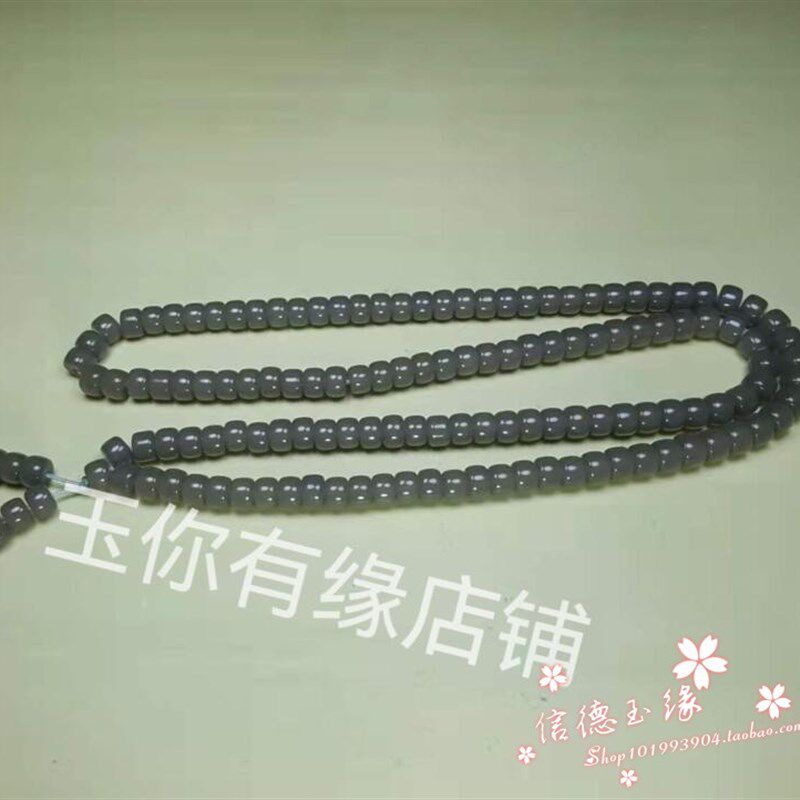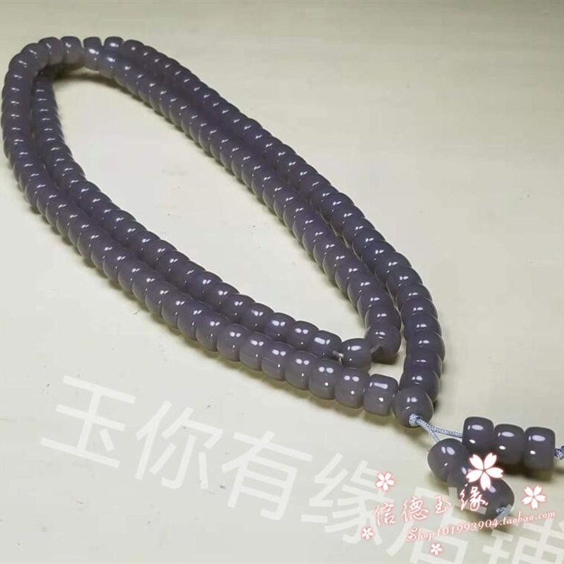 和田色玉烟紫色108颗珠子手链男女湖水绿羊脂色玉石佛珠转运手串