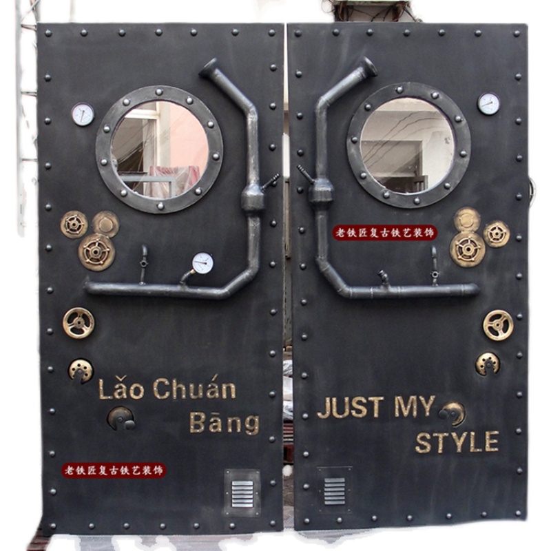 重金属工业风铁艺潜水艇双开门 仿真建筑设计 酒吧咖啡店餐厅装饰