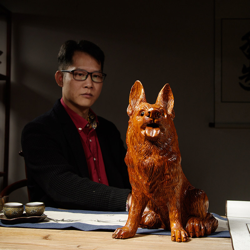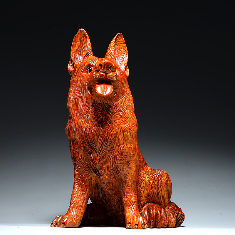 花梨实木狗摆件红木动物雕刻十二生肖木头狗家居补角吉祥物工艺品