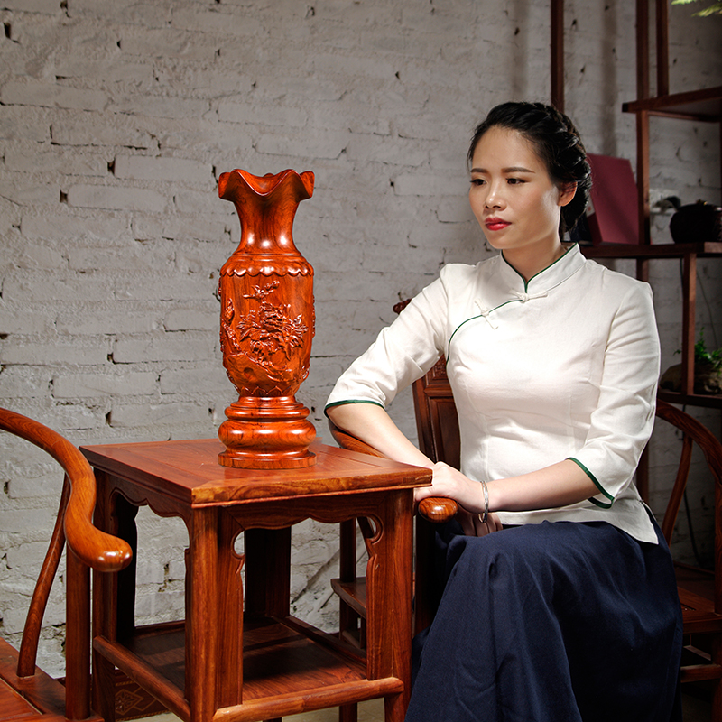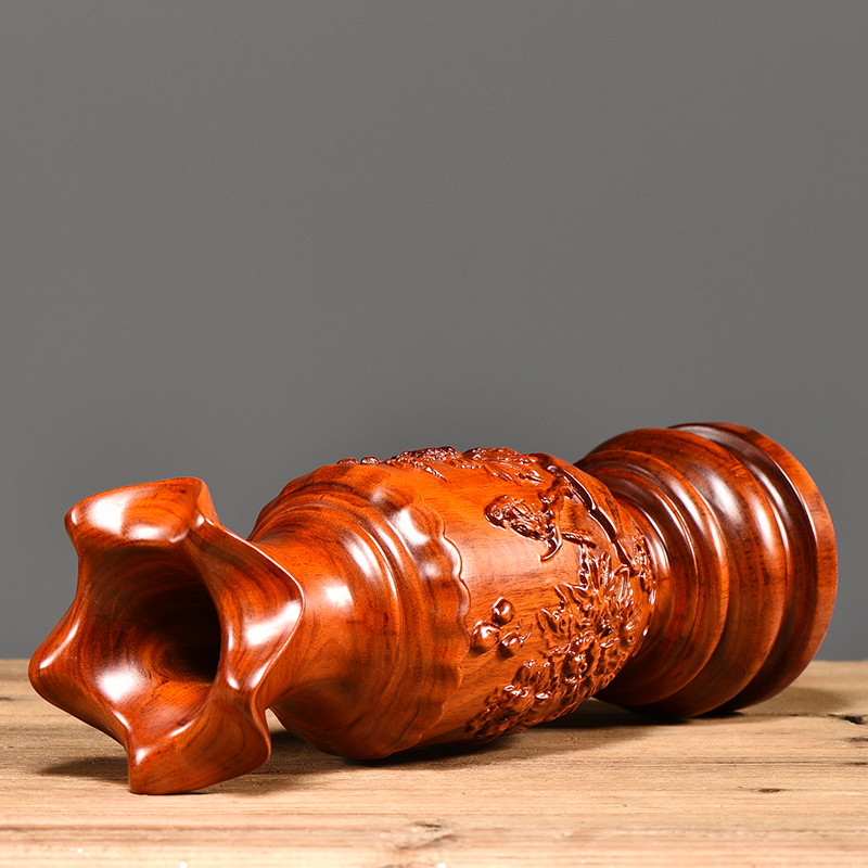 木雕花梨木装饰花瓶摆件实木客厅中式大号插花雕刻工艺品家居送礼