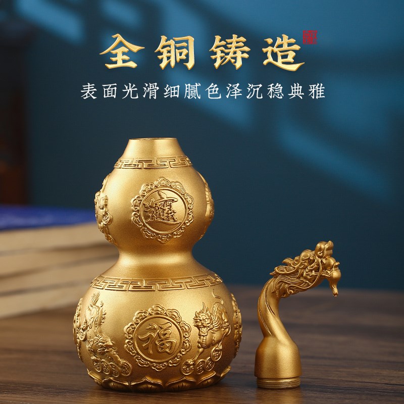 铜葫芦全铜摆件八卦挂件黄铜开口开盖空心客厅卧室胡葫国潮工艺品
