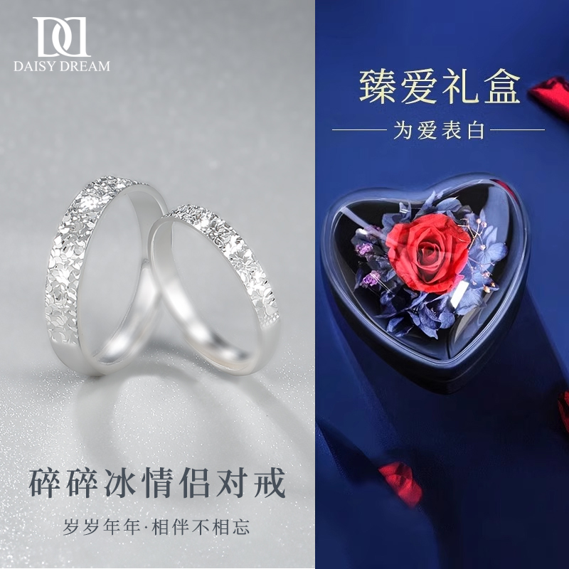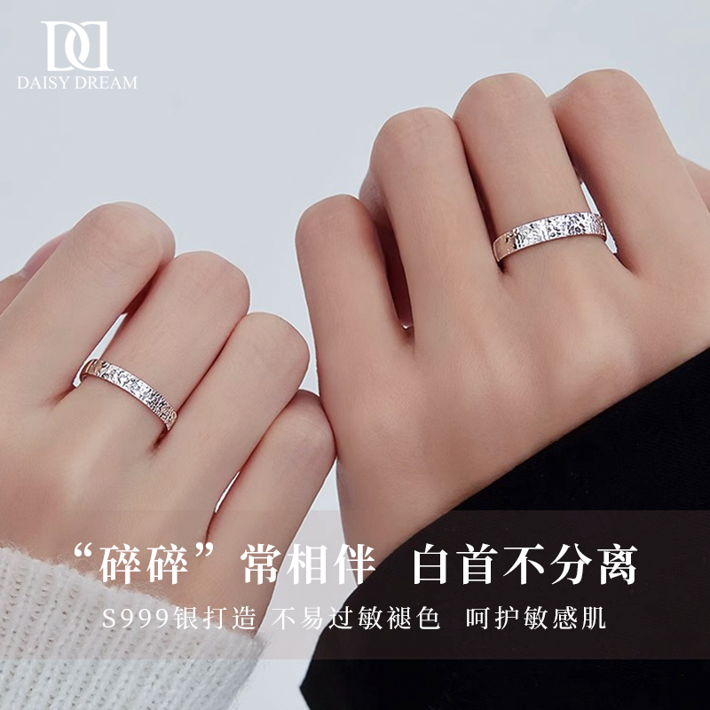 999纯银碎冰冰戒指女设计感情侣对戒轻奢食指戒送男女友生日礼物