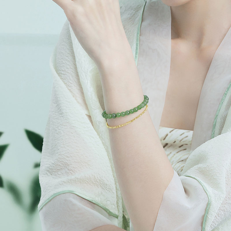 潮宏基倾玉和田玉手链玉石青玉手串手饰转运串珠圆珠纪念日礼物