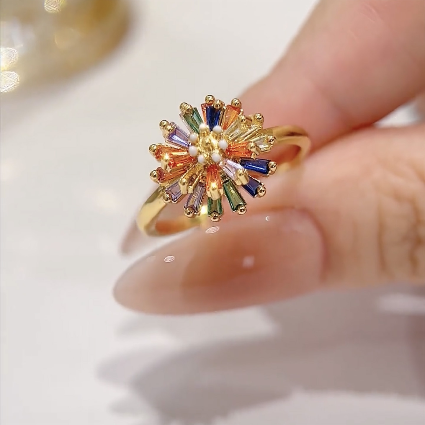 旋转烟花彩虹戒指女款欧美风开口可调节轻奢小众高级感时尚指环女