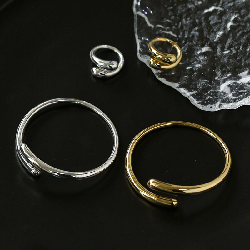 水滴戒指开口可调节叠戴手镯极简优雅轻奢重工小众设计高级感饰品