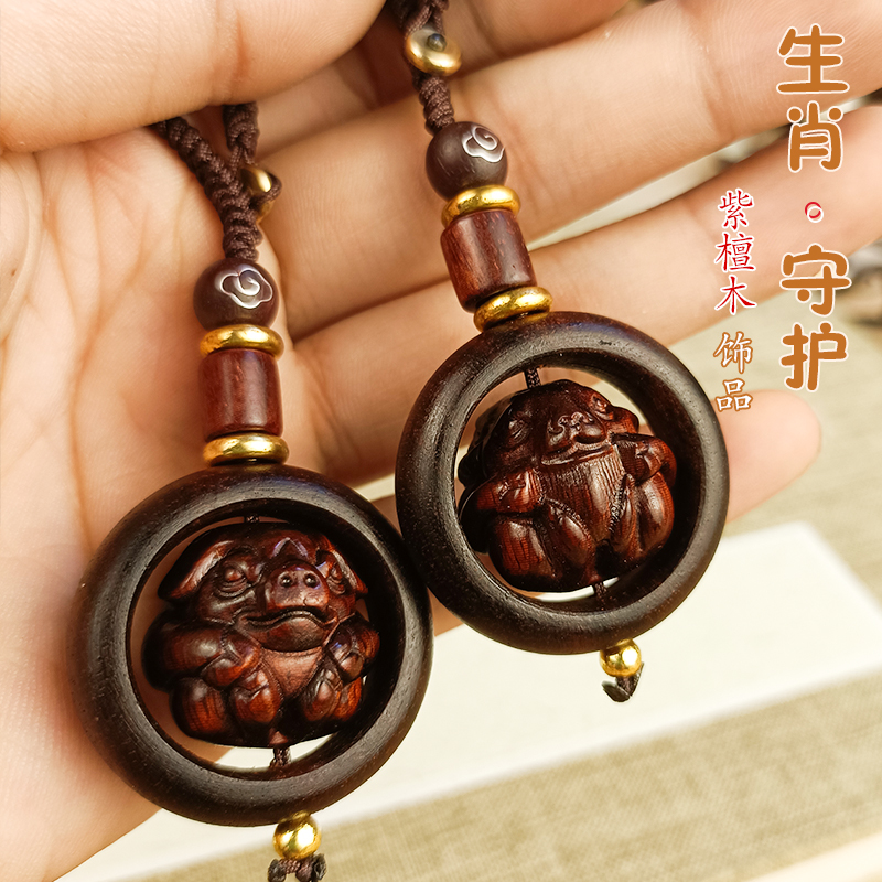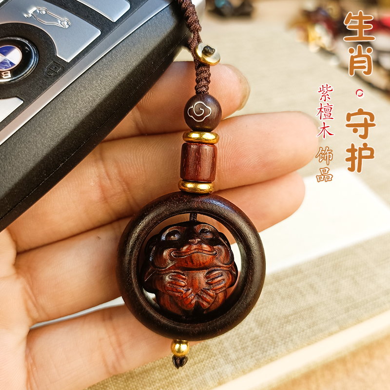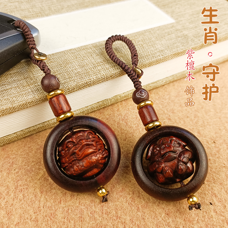 紫檀木转运珠十二生肖汽车钥匙扣挂件男女情侣包包挂饰坠链小饰品