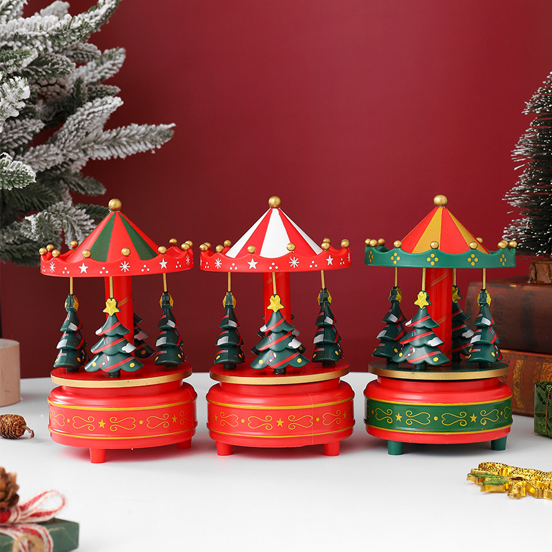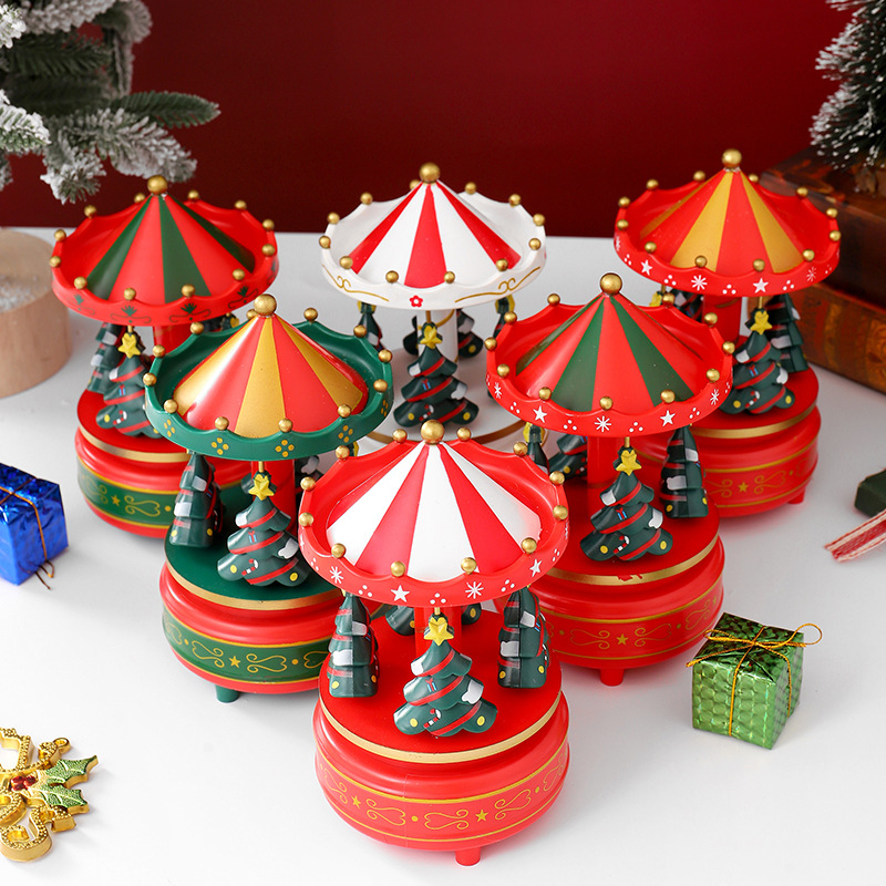 圣诞节创意礼品旋转木马圣诞树八音盒家居装饰摆件音乐盒节日礼物